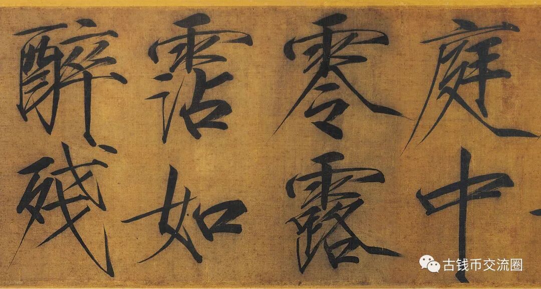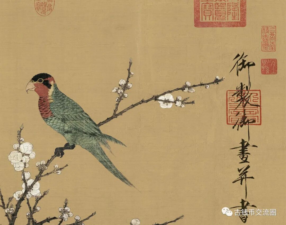 瘦金体书体运笔极为瘦硬,精神外露,没有可以遮丑的肥笔,因瘦劲刚挺而得名。横画收笔带点,竖画收笔带钩,其钩、撇、捺处均能体现出一种独到的潇酒俊逸,而连笔却如游丝飞舞,锋芒外露。匠运千斤,技艺如神,天子风度与胆识昭然纸上。宋徽宗赵估为一代书法宗主,其独创的“瘦金书”在我国书法史上独树一帜,挺拔秀丽,堪称一绝。创造一种书体是非常困难的事情,尤其到了宋朝,所有的书体在宋代以前都定型了,无论你怎么写,都很难超越这些字体,然而,宋徽宗做到了。公元1101年,北宋徽宗即位,中国的御书钱进入了全盛期。赵佶是一位历史上对琴、棋、书、画都有非凡造诣的皇帝。作为一代君主,徽宗不善治国,却偏偏是一个不错的艺术家,他最有建树的莫过于书画。他不仅创立了瘦金体,而且花鸟画也是非常细致。他将瘦金体搬上钱币,还是亲笔书写。他更因铸钱精绝,而与王莽并称为“钱法二圣”。宋徽宗因钱文、艺术扬名古今,史称“风流天子”。![]()