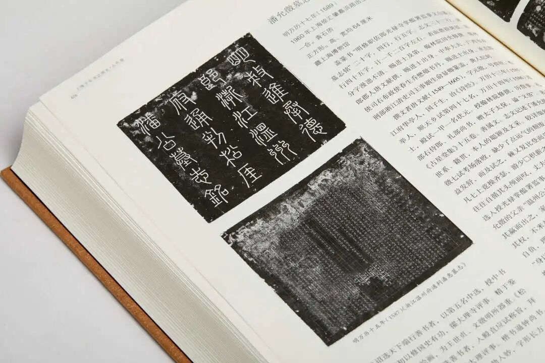 ▲上海千年书法图史:篆刻卷(全二册)+近现代卷+古代卷上海的千年“书法大事”在文化崛起、传承创新、书艺气象、书法留痕、作品传世、书法立论、文房方式和交游活动等方面都和中国千年书法史交织通融。上海千年“书法大事”往往就是中国书法史的“书法大事”;上海千年“书法大事”的文化动静往往会在中国书法史上留驻文化屐痕;上海的千年“书法大事”往往是中国书法史上的亮丽风景;上海的千年“书法大事”在理论和实践相结合的意义上强化了上海在中国书法史发展中的“书法重镇”、“书艺之城”的文化地位与历史担当。本章四篇文章从文化史、书法史、绘画史、考古等不同角度,阐释了上海千年书法的发展脉络。本章搜集了160位与上海有关的历代书家资料,按照生卒年排序,有书法大家董其昌、陈继儒等,也有不少读者还不熟悉的书家。凡是有书法作品传世的,本书都配有高清图版,很多图版都是作品的题跋、引首或者落款,极具稀缺性。文字内容也由业界专家执笔,涉及书家生平、艺事、书作等。除了墨迹作品,在上海千年书法中,碑帖也是重要的组成部分。如章楶书《宋故孙府君墓铭并序》,系章楶四十岁时所书,全篇五百余字,整体布局严密,疏朗有致。字体方劲古拙又清晰秀丽,横笔蚕头燕尾,长撇飘逸灵动,“力”字又若篆书,富有变化,为嘉定宋代碑刻中的书法佳作;娄坚《修复真际庵记》碑,系娄坚五十八岁时所作,笔力雄健,结体舒展,可见其于钟繇,已至出神入化。娄坚为明“嘉定四先生”之一,从归有光游,融会师说成一家言,和平安雅,能以真朴胜人。诗律在元和、长庆间,古风尤胜。书法钟繇、王羲之,晚年改学苏轼,一洗柔媚之习。时称:“书法妙天下,尺蹏寸简,人争传购。”中国是一个有文字记载的历史悠久的文明古国,距今三千多年的商代甲骨文已形成一套完整的文字体系,而从甲骨文往上追溯中国文字的起源还有一大段空白。随着新石器时代和青铜时代早期的考古发掘,中国近百处遗址中发现了刻画符号和陶文,最早的为距今8000年—7000年的河南舞阳贾湖地区裴李岗文化和安徽蚌埠双墩遗址,上海的崧泽、良渚、马桥文化中也都有发现。在考古发现中,墓志、铜镜、玉器、铜器等文物上皆刻有文字。从距今6000年的崧泽文化刻画符号至清代墓志、砚台等,本章213个条目比较全面的呈现了古代上海地区发现的考古文物。习近平总书记在党的十九大报告中指出:“文化是一个国家、一个民族的灵魂。文化兴国运兴,文化强民族强。没有高度的文化自信,没有文化的繁荣兴盛,就没有中华民族的伟大复兴。”早在2007年6月,时任上海市委书记的习近平同志在参观“海派书法晋京展回沪报告展”时明确指出:“要把书法艺术打造成上海国际文化大都市名片之一。”为使人们全面了解认识上海这座城市,我们从书法文化史角度,以图文结合方式,特邀有关专家学者,认真调研和资料收集,花费了他们不少精力和大量业余宝贵时间,经过五年多的时间,编撰出版《上海千年书法图史》丛书。