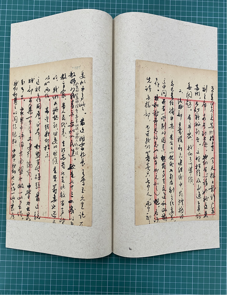 在陈述筹委会拟定成立大会事宜后,柴先生简单谈及工作中和其他民主党派及社会团体的接触:“这里工作开展正常,和[民]盟有些碰头,最近统战部召集一个会又进行协商,中学也大略分了工。文化界中评弹方面盟也做一些工作。我们和农工的关系很好,中学我们也正作一些发展。”寥寥几句,透露出柴先生工作之高效,也显示了他为人平易热情、善于交际的特点。启功先生曾说:“柴先生的朋友特别多,几乎当时学术界、教育界不认识他的很少很少。有人说他为什么有那么多朋友,他有一种魅力,和他认识的人自自然然没有隔阂。”[3]柴德赓先生1929年夏考入北平师范大学史学系,在校期间受陈垣等名师提引教诲,步入史学殿堂。毕业后长期追随陈垣,曾执教于辅仁附中、辅仁大学历史系,与启功等人结识,成为一生至交。辅仁大学的主要学科于1952年并入北京师范大学之后,柴先生也转入北师大历史系任教,兼任系主任。我校资深教授刘家和先生1952年从辅仁大学历史系毕业,在北京师范大学任教,于柴先生亲炙有年。1955年9月柴先生南下苏州时,就是刘家和先生将其送至火车包厢[4]。十年来,柴念东先生整理祖父遗著,多次来到铁狮子坟,寻求刘家和先生的帮助与指导。通过刘先生点点滴滴的回忆,柴念东对祖父生平与学术的了解更加深入。近三四年来,柴念东还屡将祖父手泽中与北师大相关的部分捐赠给我校图书馆。人事交织,使柴德赓先生与北师大的缘分延绵不断。柴先生此函,经柴念东先生认证确属未见史料之后,北京师范大学图书馆希望将其庋藏,汇入近年来不断扩充的本校名师手迹文献中。今年夏初,我校资深教授王宁先生听闻图书馆着力收求教师手泽,曾将自己上大学时听冯成麟先生“现代汉语课”的课堂笔记捐赠给图书馆,并对图书馆古籍特藏部肖亚男说:“看到想买的东西[5],你告诉我,我让学生去探好,买了赠给图书馆。” 此次,肖亚男将旧书网上的柴德赓手札情况报告王宁老师,王老师立即嘱其博士生李聪进行调研,很快将这通信札购买回来,当天即联系肖亚男,使名师手泽入藏图书馆。1954年考入北京师范大学中文系的王宁先生,虽不曾上过柴德赓先生的课,却也耳闻大名,对柴先生那一代学人充满尊敬与感念。王老师的慷慨举动,既是对图书馆文献收集工作的鼎力支持,也是对老一辈学者的虔诚致意,对尊师重教传统的默默弘扬。图书馆收到王宁老师购买捐赠的柴德赓手札后,先送入古籍修复室。葛瑞华老师对这两叶信札进行了仔细的修复装帧,包括压平、修补、设计成书尺寸、配纸、挖衬、粘贴、装订等工序,令柴先生这通手札以赏心悦目的形式呈现出来。20世纪40年代末,柴德赓先生在辅仁大学期间,曾请若干师友手题墨宝,集成精美的册页,题以《青峰草堂师友墨缘》。2020年11月,为纪念陈垣校长诞辰140周年。北师大图书馆曾举办“宾主均高士 门墙多俊彦——陈垣及其友朋弟子学术手稿、往来书札及书画作品展陈”,当时即借展了《青峰草堂师友墨缘》,令北师大师生流连忘返。柴先生用心收集师友墨宝,居心虔敬,不言而喻。今天,我们怀着同等虔敬的情思,穿越历史的幽光,向柴先生及其同辈学人致以深沉的敬意。葛老师说,将来收到捐赠的散叶手写文献,都可以做成类似的样式。近年来,北师大图书馆获赠本校教师、校友及社会人士捐献的珍贵文献若干种,包括古籍线装书、名师手稿等。每接收一宗捐赠,修复人员都孜孜不倦加以修复。我们将择时举办捐赠文献展,让这些文献呈现和保持最好的状态,不负捐赠者慷慨无私的精神,不负捐赠者对北师大图书馆的信任与期待![1]http://www.suzhoumj.gov.cn/show.asp?id=115&path=115&classid=0&filename=115[2] 同上。