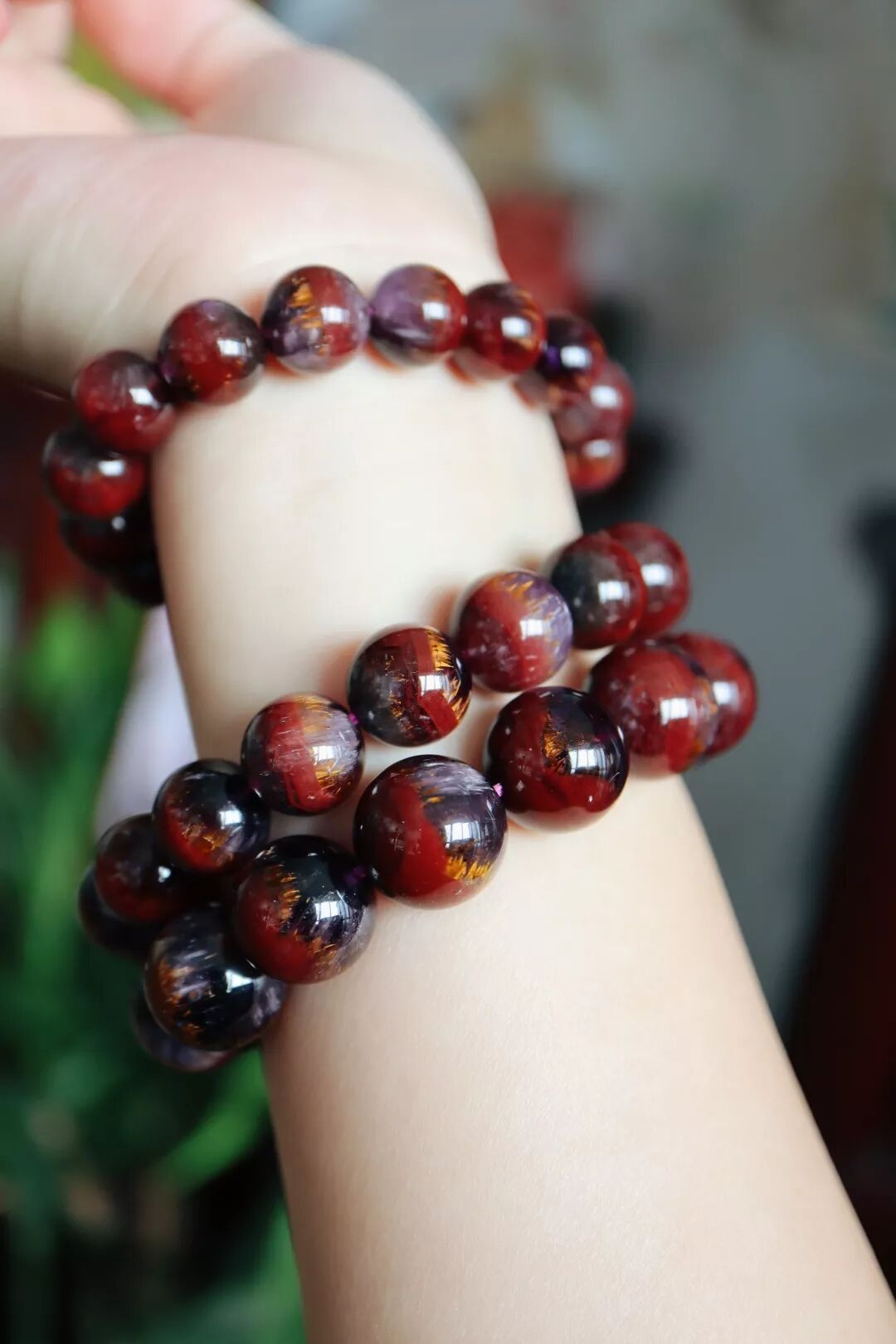 极光23的晶体并不通透,内部棉絮较多,颜色奇特多样。在光线不强烈也不是很明亮的时候,她是暗红色的,低调神秘;当她对着光的时候,你就会看到紫色、黄色、红色、金黄色等各异的颜色。