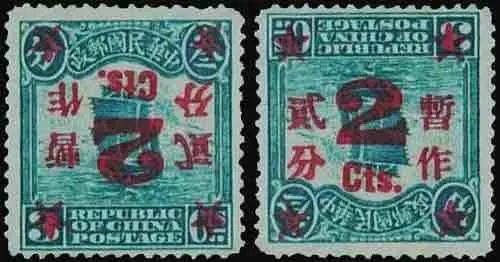 其中,2元面值票在印刷操作上造成了中心宫门图倒印变体,俗称“宫门倒印”邮票。“宫门倒印”错体票仅流出48枚,被誉为“民国珍邮榜首”。在2010年苏黎世亚洲香港春季拍卖会上,一枚“宫门倒印”票曾拍出97.75万港元的天价。