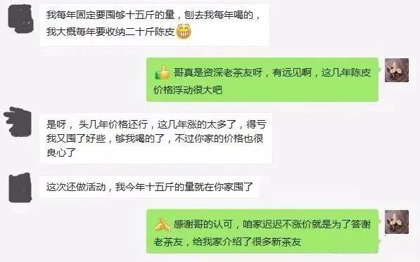 从源头种植纯手工天然制作新会陈皮,每颗陈皮都是纯手工剥皮晾晒。现在家里有三片柑园,都是采用生物灭虫方法有机种植,不打农药不放添加剂,我们只是大自然的搬运工!好多厂商都找我们供货,每年有好多老客户专门采购预定!每年到采摘季节,都会邀请茶友过来柑园体验采摘制作,一起宣传陈皮文化和传承!我和我的家人多年来一直坚守着在这片土地上,做良心产品,在别人眼中我是一个自律、自强又不缺温柔的侠女子。经营陈皮这些年也认识了很多天南地北的朋友,收获了大量的忠实粉丝,得到了很多朋友的认可。我带领着家人常年在新会晒制陈皮,卖陈皮,推广我们家乡的好产品,我们家在新会也有陈皮店面,经常也有顾客带着朋友来店里喝茶,每次都给我带来很多顾客。18年受老客户邀请,我们启动了线上销售,为了推广真正的陈皮和为太远不方便来店里的茶友们寄陈皮。“欢迎大家来我的家乡做客,欢迎来我的店里喝茶,参观。带您逛一逛柑园,请您品尝正宗的新会陈皮!”很多人觉得陈皮贵,是因为没有找到一手货源,你买到的货都是经过多层分销加价,而且最重要的是质量也没有保障!所以你认识我,能节省不少钱,保证纯天然,无添加,买到正宗新会陈皮,确保没有中间商赚差价。2020年虽然受疫情影响,陈皮价格一度攀升,而且还一直不断上涨,但是我们始终坚持本心,把好品质关、服务关,不图眼前利,服务好每一位顾客,把每个客户都当朋友,我们很多客户都是回头客。“特别对于线上客户,我们做到7天无理由退货。今天我们能透明给多少人,就能影响多少人,今天我们能让多少人看穿我们,就有多少人愿意把真心交给我们。就是要把自己懂的、会的、有的、都传递出去,传递给更多的人,帮助更多的人。”“如果我们贪图利益是做不大的,很可能被淘汰。在未来的日子里,我将带领着家人继续行走在向上的道路上,将自己的生活感悟、成长故事、创业经验说给你听,和你一起品茶静心,静心而自醒,自醒而能悟,悟而能重新发现,感受不一样的茶人生(我即是茶,茶即是我)。”(感谢茶友们对我们的信任)