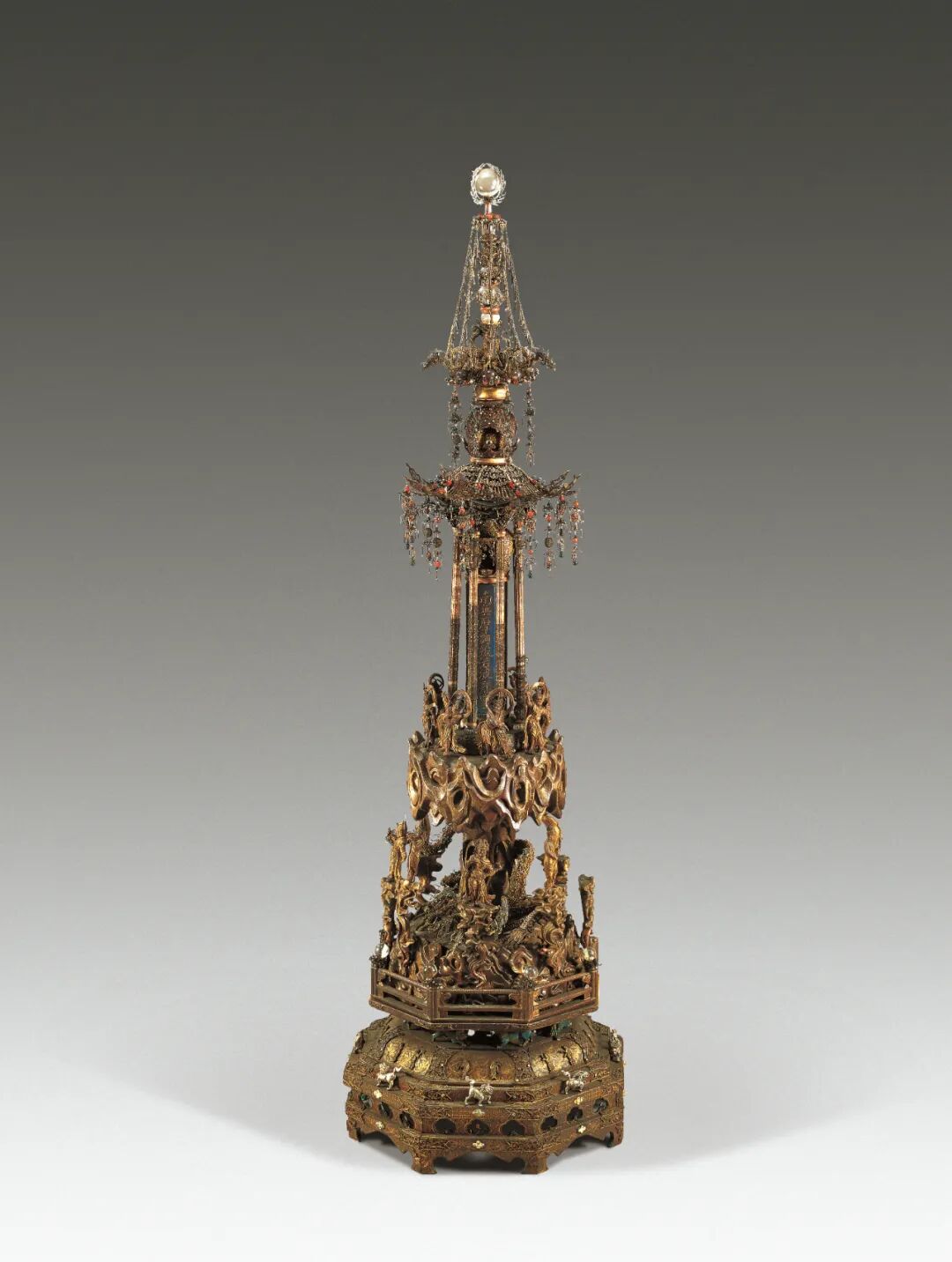 图 1 ˉ 出自瑞光寺塔第三层天宫的微型真珠舍利宝幢,高 122.6 厘米,11 世纪初(承蒙苏州博物馆惠允)