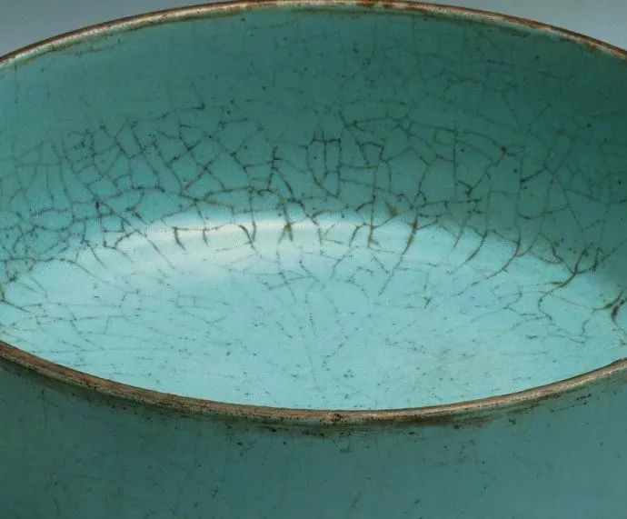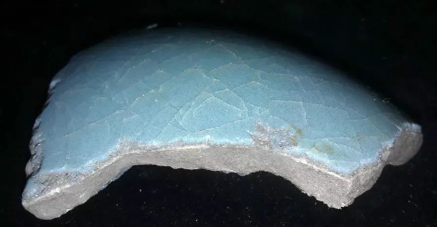 汝瓷的釉层非常薄,一般的汝瓷釉层在0.2mm到0.3mm之间,大件的汝瓷釉层也只有底部才会才能去到0.5mm,这个也是判断汝瓷的关键点!