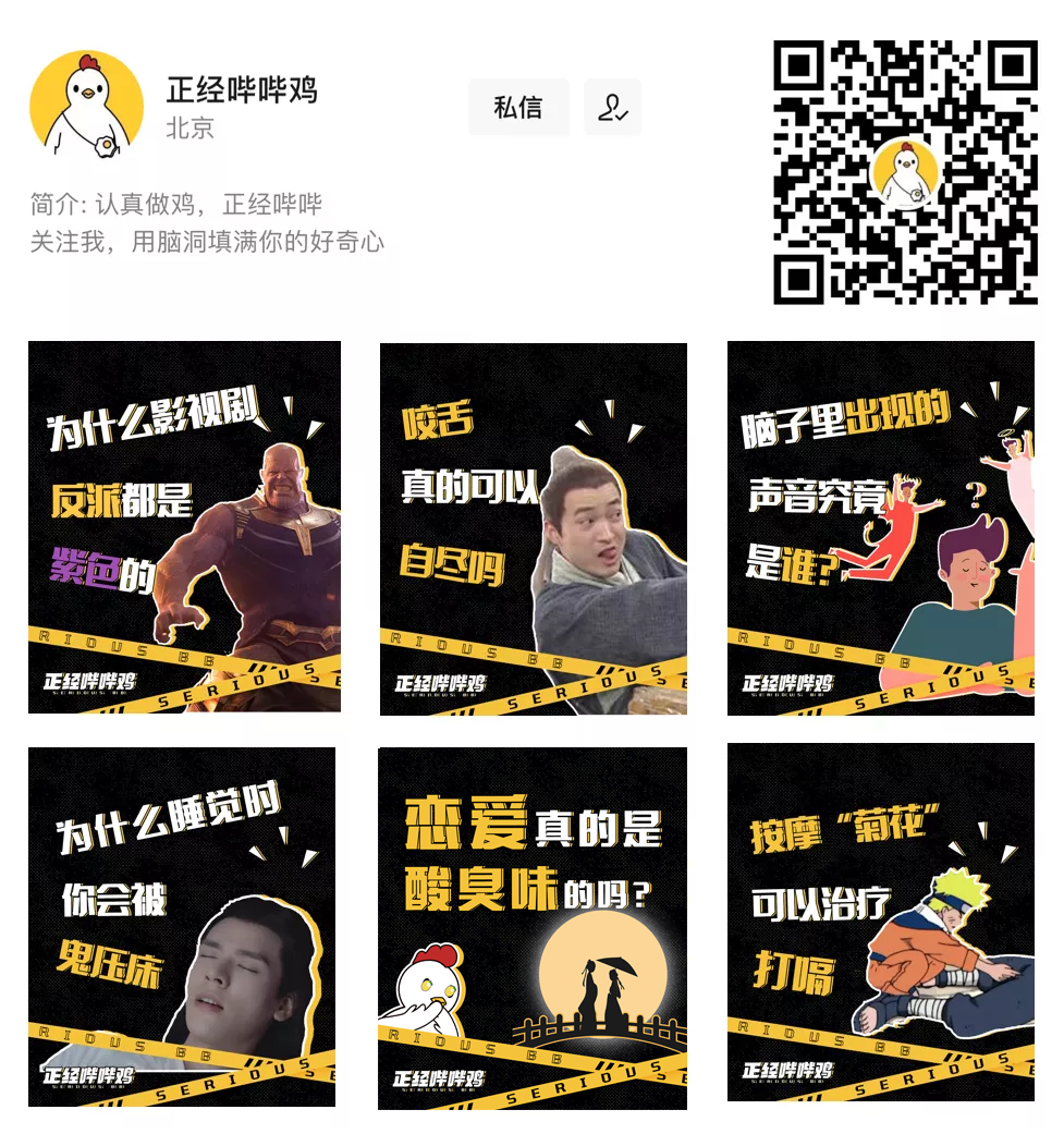 我们的口号是:认真做鸡,正经哔哔!关注我,用脑洞喂饱你的好奇心。