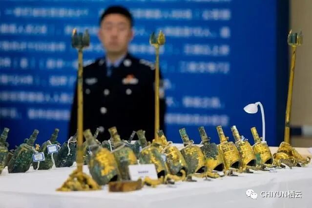 公安机关追缴汉云陵被盗掘的鎏金编钟