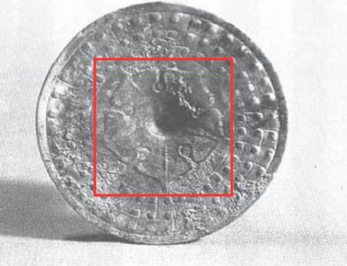 无独有偶,南越王墓出土玉盒上也出现了另一种八瓣花纹,这一纹饰出现于玉盒盒盖上,其纹饰分为三区,正中间是八瓣柿蒂形的浅浮雕纹,这里的八瓣花纹为连续重复的一尖两弯花瓣形,围绕着盒盖正中的钮饰形成繁复的装饰纹饰。