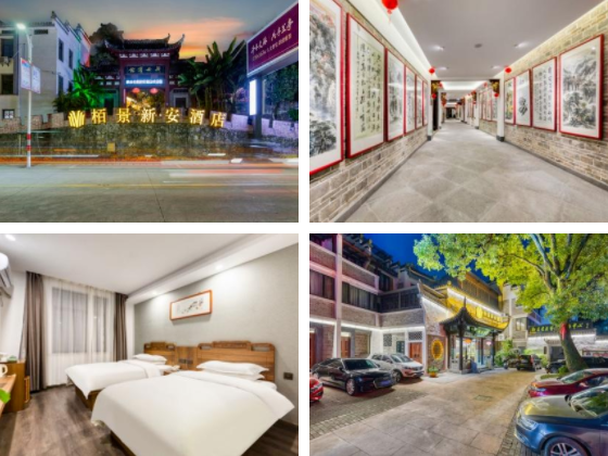 入住精品酒店--歙县栢景新安酒店。酒店位于徽州古城西大门,曾接待过党和国家领导及社会各界知名人士。风格为徽系为主,雕梁画栋,古色香,历史悠久,文化底蕴深厚。为继承和弘扬徽州文化,酒店设新安书画艺术传播中心,常年接待全国各地的书画名家,并将其书画作品于酒店艺术长廊展示,逐步使酒店成为出入谈笑有鸿儒,往来聚会无白丁的文化休憩之所。我们热爱春色江景,着迷于动人徽文化,可徽州的美食一定不能错过。无论是临江时尚的酒楼,还是街头巷弄里的小馆子,毛豆腐和臭鳜鱼都是不容错过的选择。