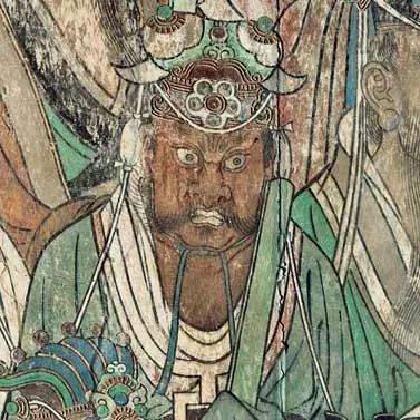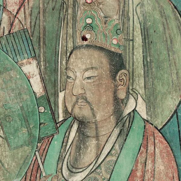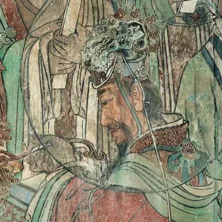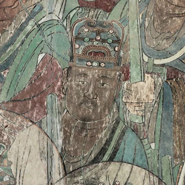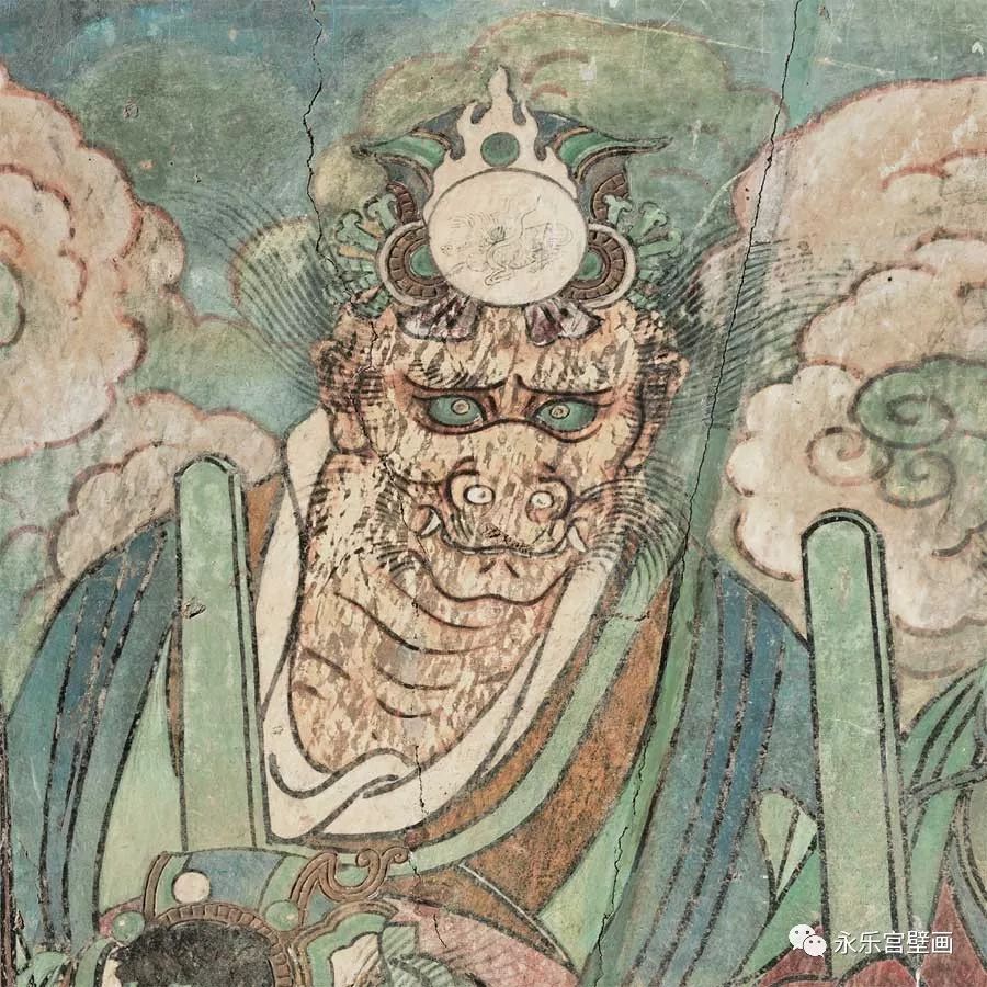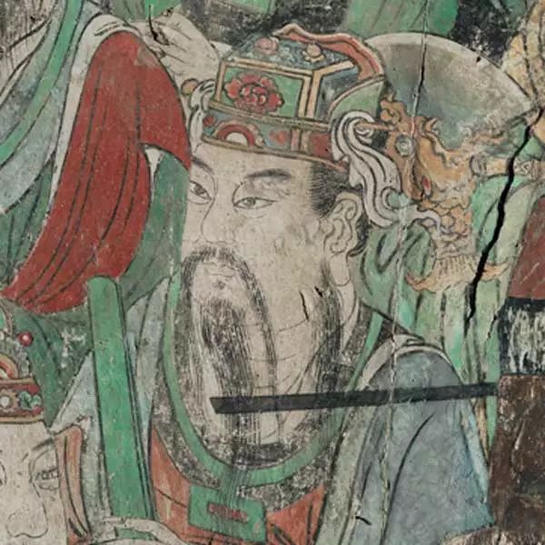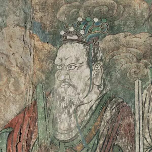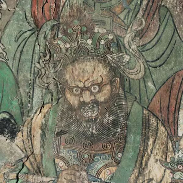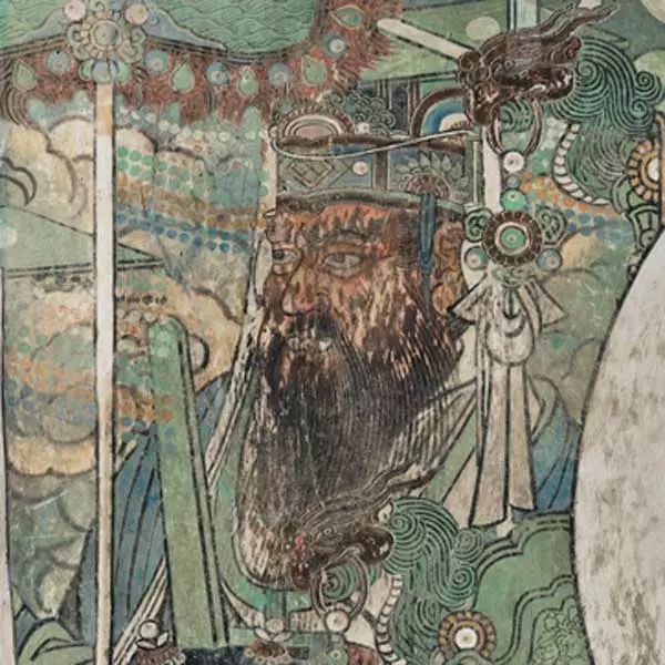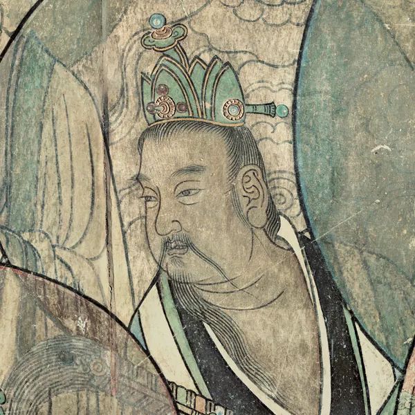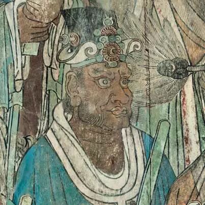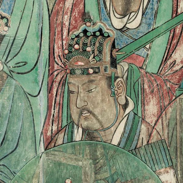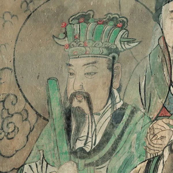 绘于东壁南后土娘娘,又称后土。源于母系社会自然崇拜中的土地与女性崇拜。全称承天效法厚德光大后土皇地只,是道教尊神“四御/六御”中的第四位天帝,她掌阴阳,育万物,因此被称为大地之母。相传她是最早的地上之王。后与主持天界的皇天大帝(昊天)相配合,为主宰大地山川的的女性神。