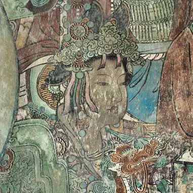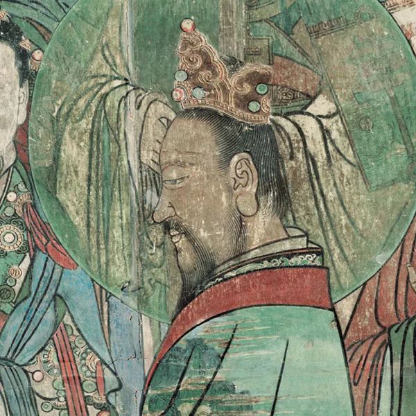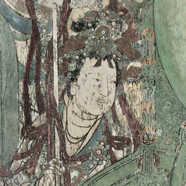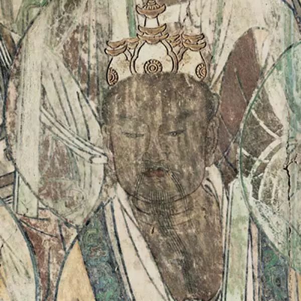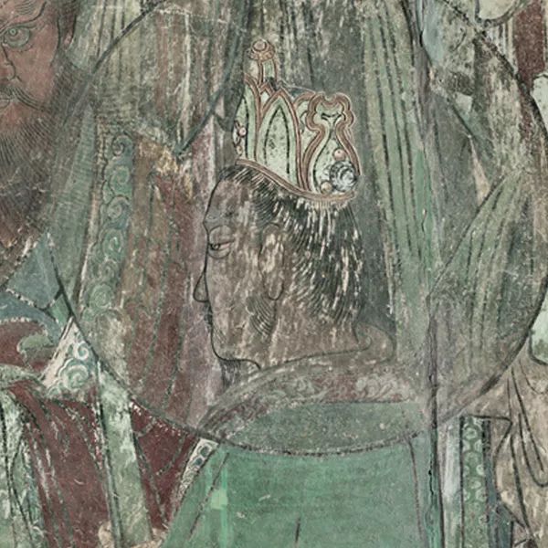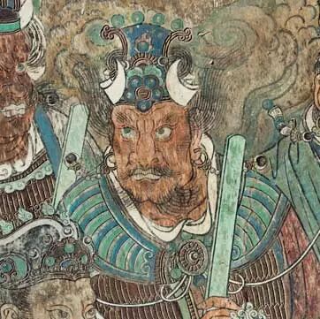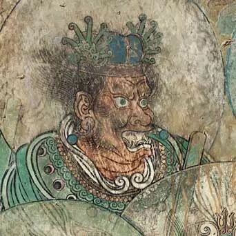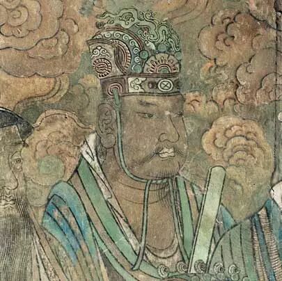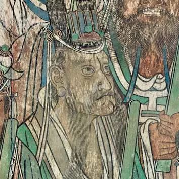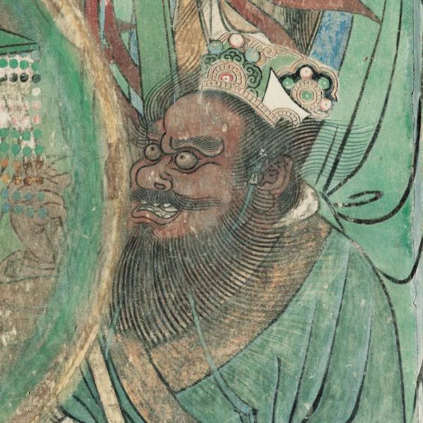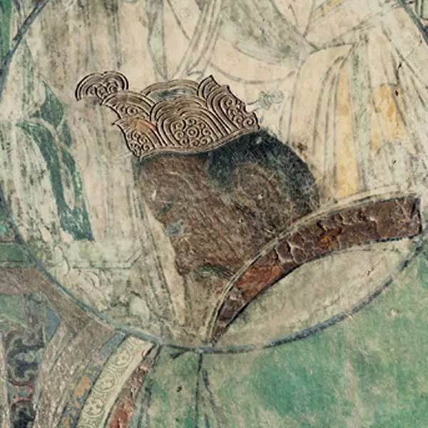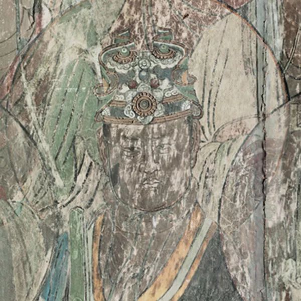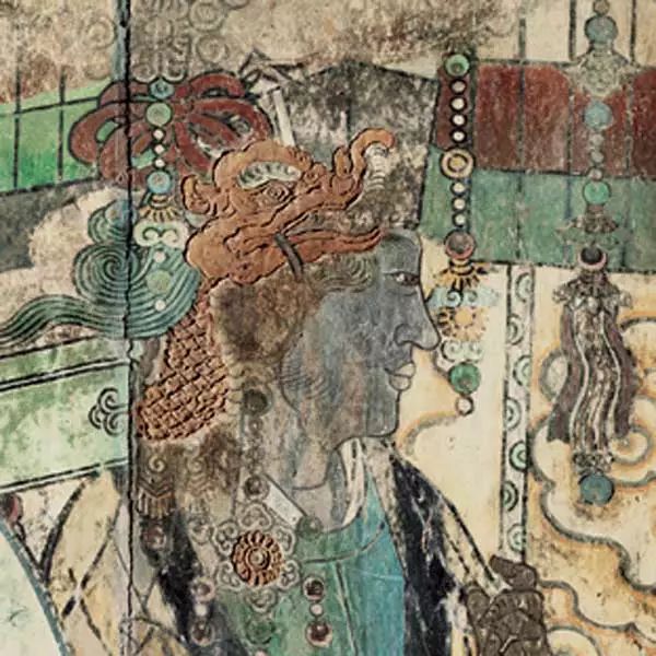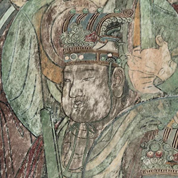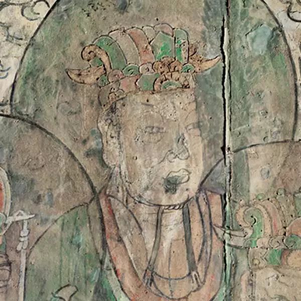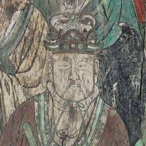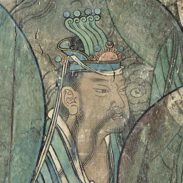 绘于东壁南后土娘娘,又称后土。源于母系社会自然崇拜中的土地与女性崇拜。全称承天效法厚德光大后土皇地只,是道教尊神“四御/六御”中的第四位天帝,她掌阴阳,育万物,因此被称为大地之母。相传她是最早的地上之王。后与主持天界的皇天大帝(昊天)相配合,为主宰大地山川的的女性神。