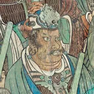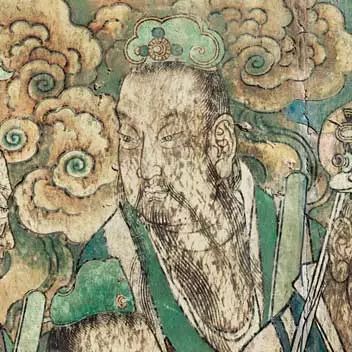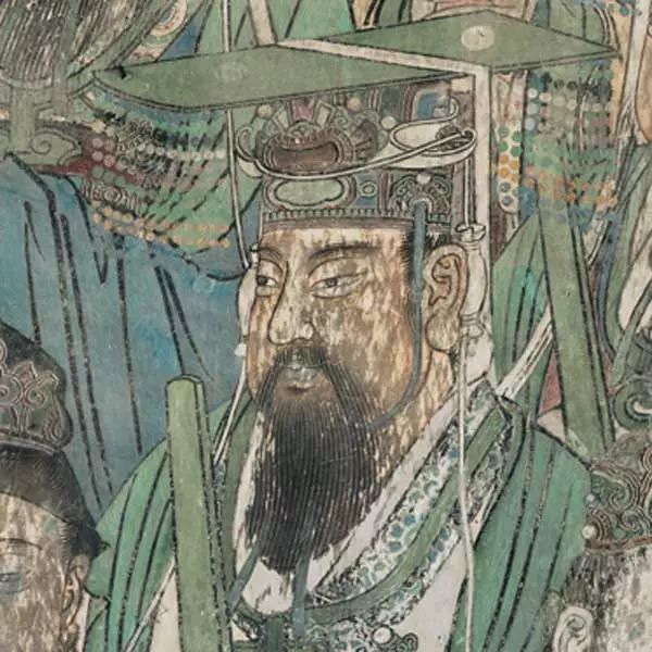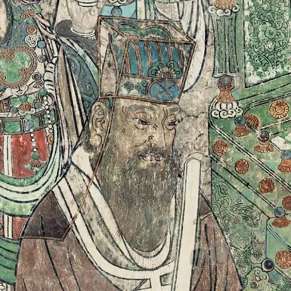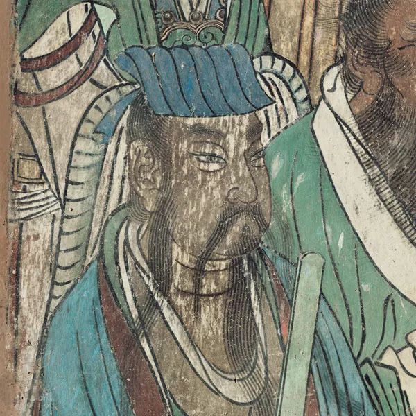 南荣趎,手捧画卷。姓南荣,名憨,又作南荣畴、南荣俦、南荣寿、南荣帱,庚桑楚弟子。灌县人(今四川都江郾)。著名春秋末期贤士。后向老子求教。