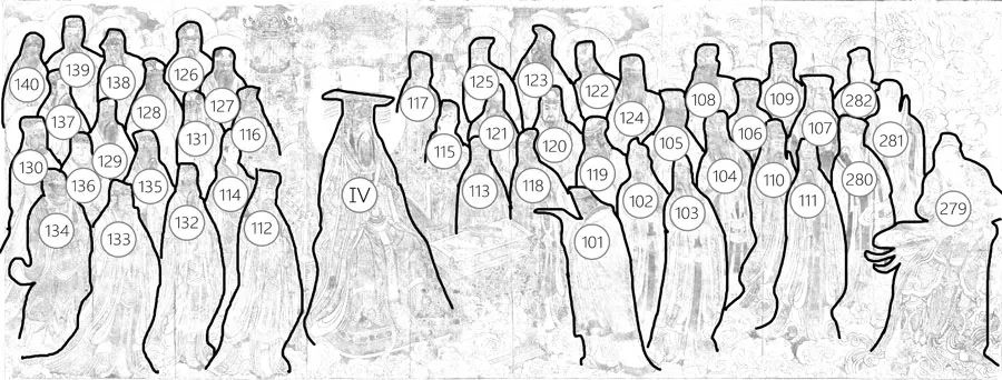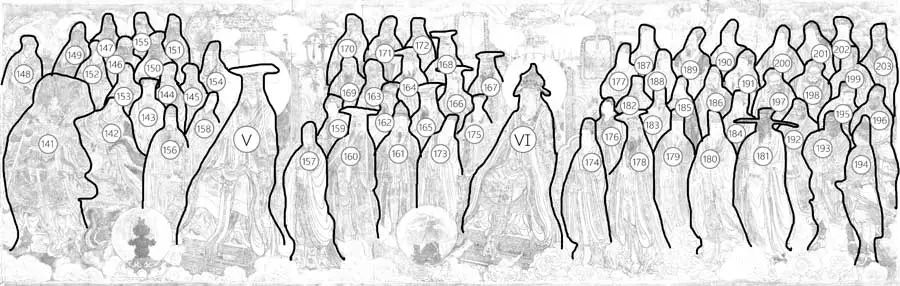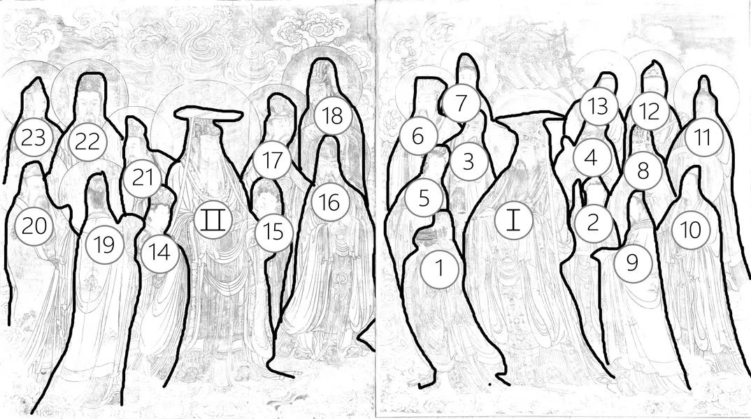 8位尊神身高在3米以上,每个人物的衣冠、服饰,面部造像均无一处相同,是中国古代工笔画中集大成的一部作品。这幅作品也是十三、十四世纪美术史上极为重要的一部作品,享有“东方画廊”之美誉!