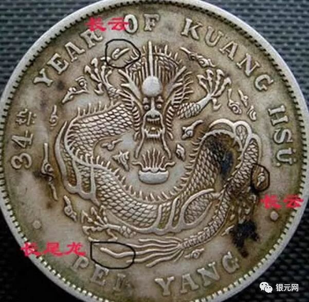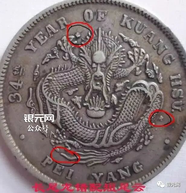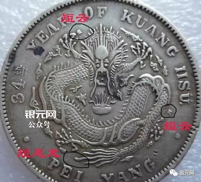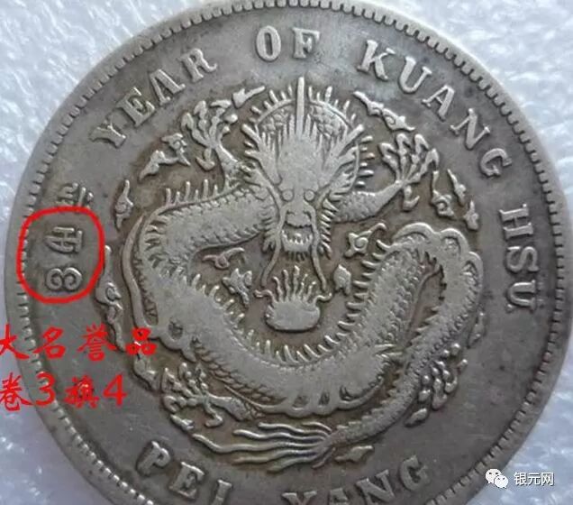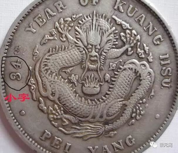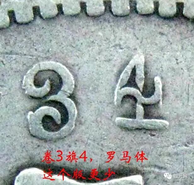 北洋34年异体字版(卷3旗4,北洋大名誉品,卷3旗4,罗马体这个版更少,又叫艺术体版,北洋34年版别中排名第一,还有北洋34卷3异4,34卷3高4,34箭3旗4,肥卷3版等等)是造币厂有意识地改模具,“银元网”公众号。这叫做主动修改,于是出现了卷“3”异“4”、以及卷“3”旗“4”等版别,仔细观察就会发现,上述34年银币的龙图案是33年龙而不是常见的34年龙(33和34年龙的龙鳞感觉不同,可仔细对比:)