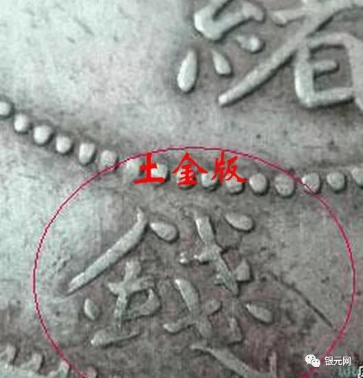 北洋34年短尾龙土金版金旁的写法少了上面的一横