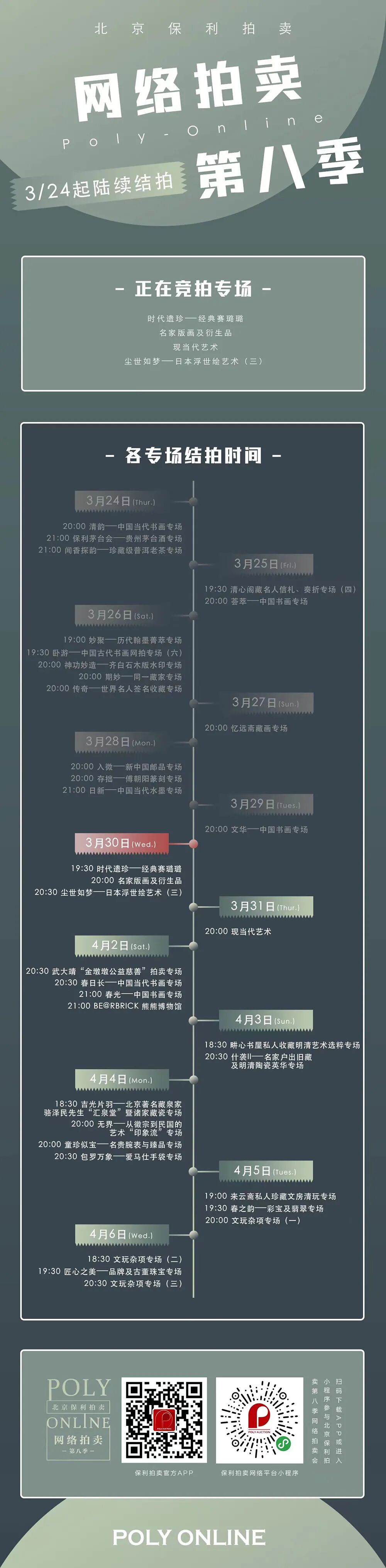 3月30日至各专场结拍当天17:00前