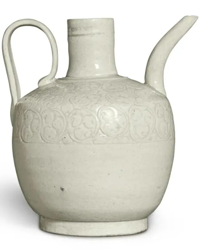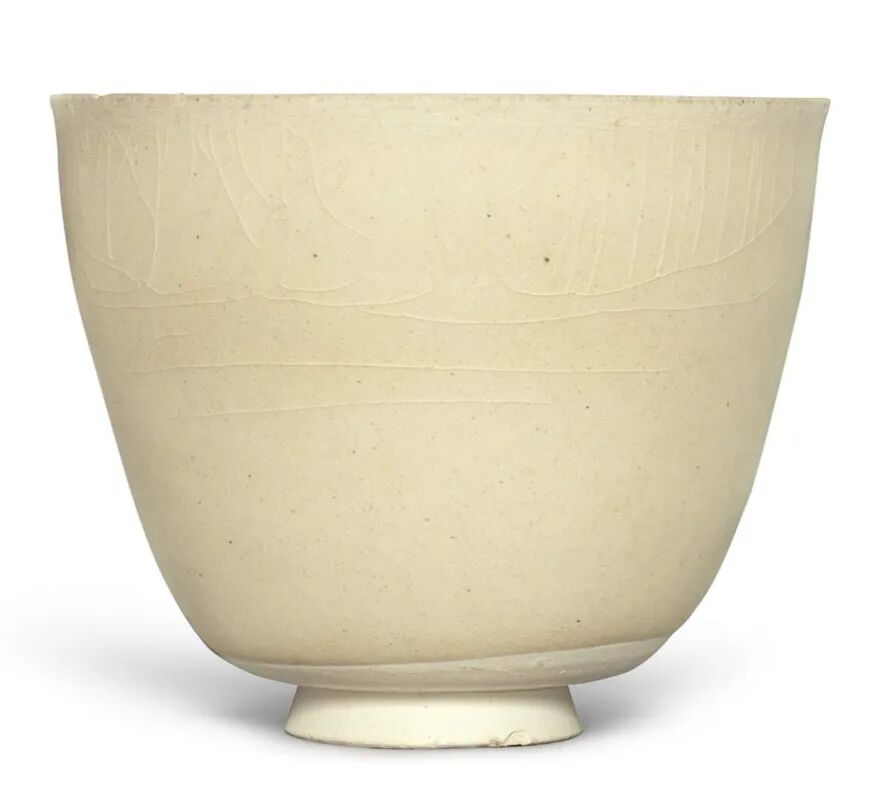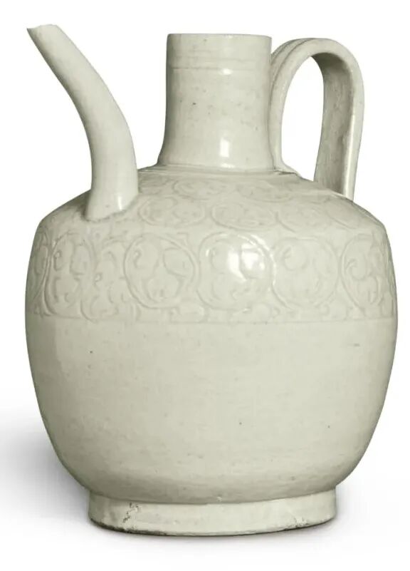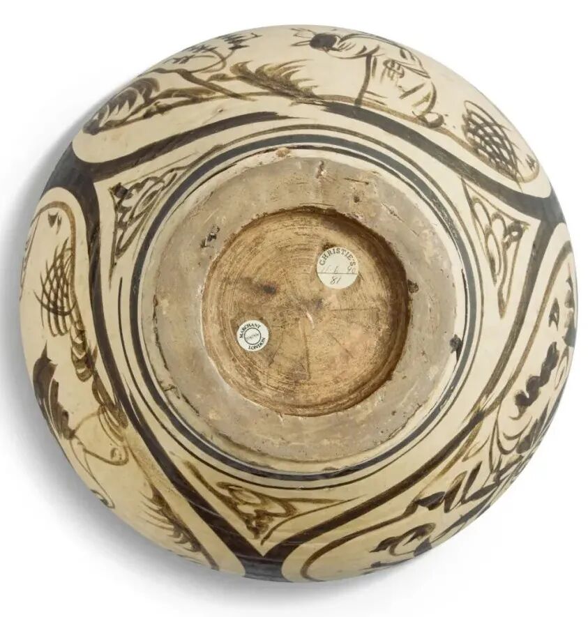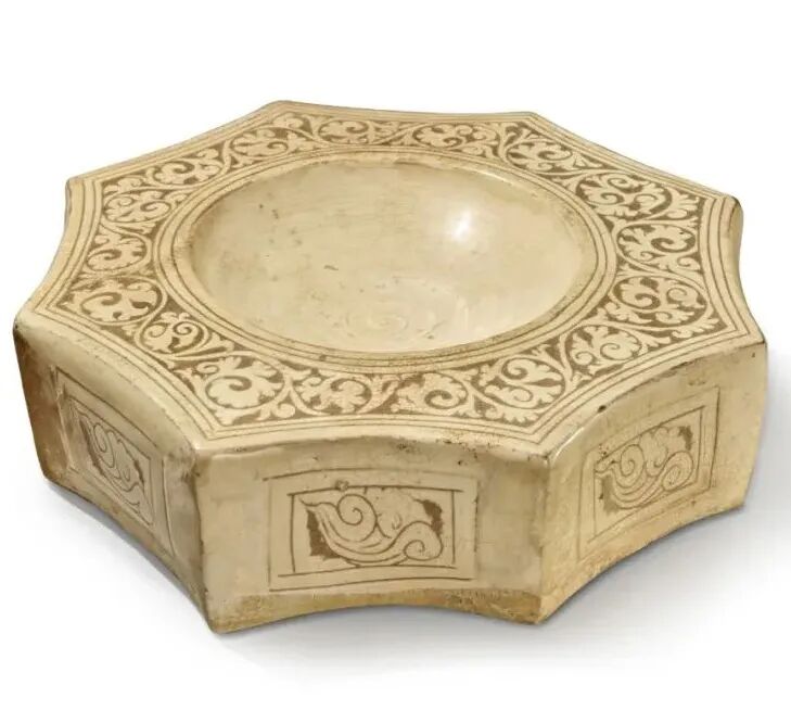 金/元 磁州窑白釉剔花缠枝花卉纹器