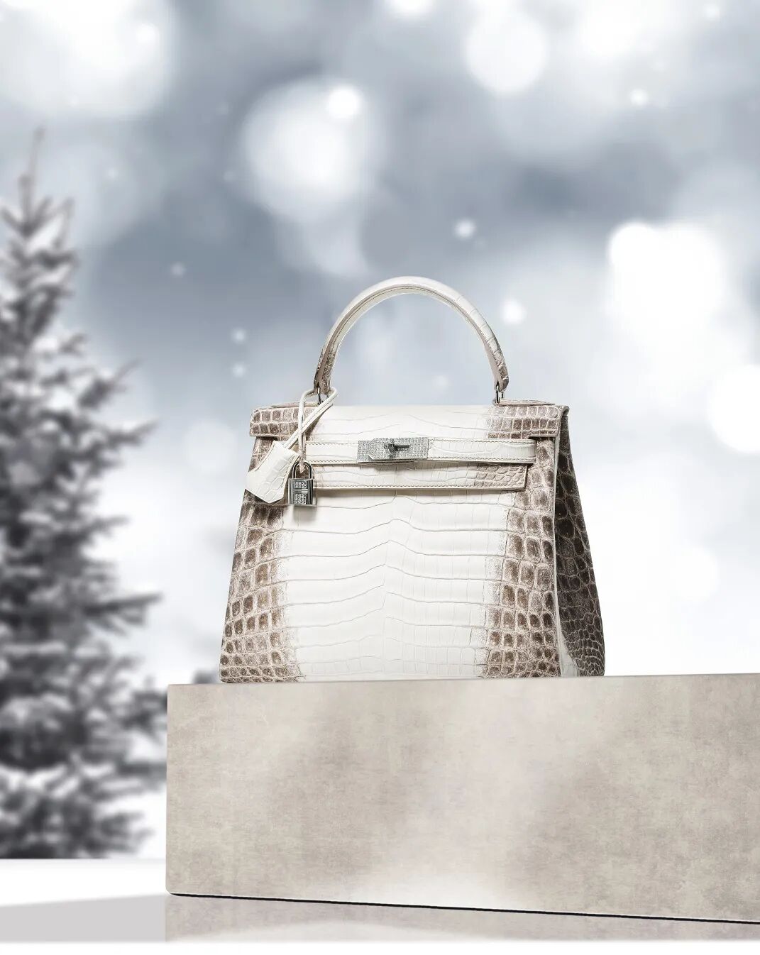 鑽石喜馬拉雅鱷魚皮手袋絕對是愛馬仕鱷魚皮手袋中頂級的巔峰之作,在行業及收藏圈中擁有傳奇性的地位。這款手袋只為愛馬仕極小數最頂級尊貴的VVIP客戶而設計,璋顯客戶最無與倫比的尊貴身份,亦是被行業間公認為愛馬仕產量最低的手袋之一。包身的金屬扣及掛鎖均以18K白金經人手打造並刻上獨一無二的序列編號,表面整齊地鑲嵌229顆F-G色,VVS淨度總重約9.28 克拉鑽石,並配以原鑲鑽石證書及特製的包裝盒。