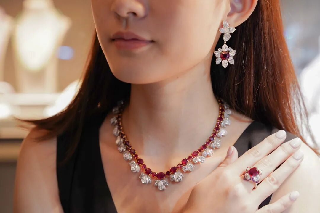 鳳凰是中國古代傳說中的百鳥之王,在中國的象征文化中,鳳凰是完美主義的化身也是人們心目中的瑞鳥,天下太平的象徵。事實上,上古鳳凰分五種顔色,赤者才能稱之爲鳳。是次秋拍,保利榮幸呈獻一條由60顆産自緬甸抹谷紅寶石組成的項鏈——「丹赤鳳翥」,其中紅寶石總重達57.71克拉,並且被瑞士著名的彩色寶石鑒定機構古柏林評爲鴿血紅級別,其紅色調純正、鮮豔、均勻,自內部盈盈發光,猶如一只璨然熾熱的赤翥,正展翅飛舞,目睹其光芒的人,無不怦然心動 。