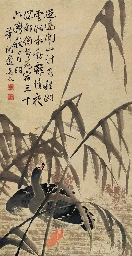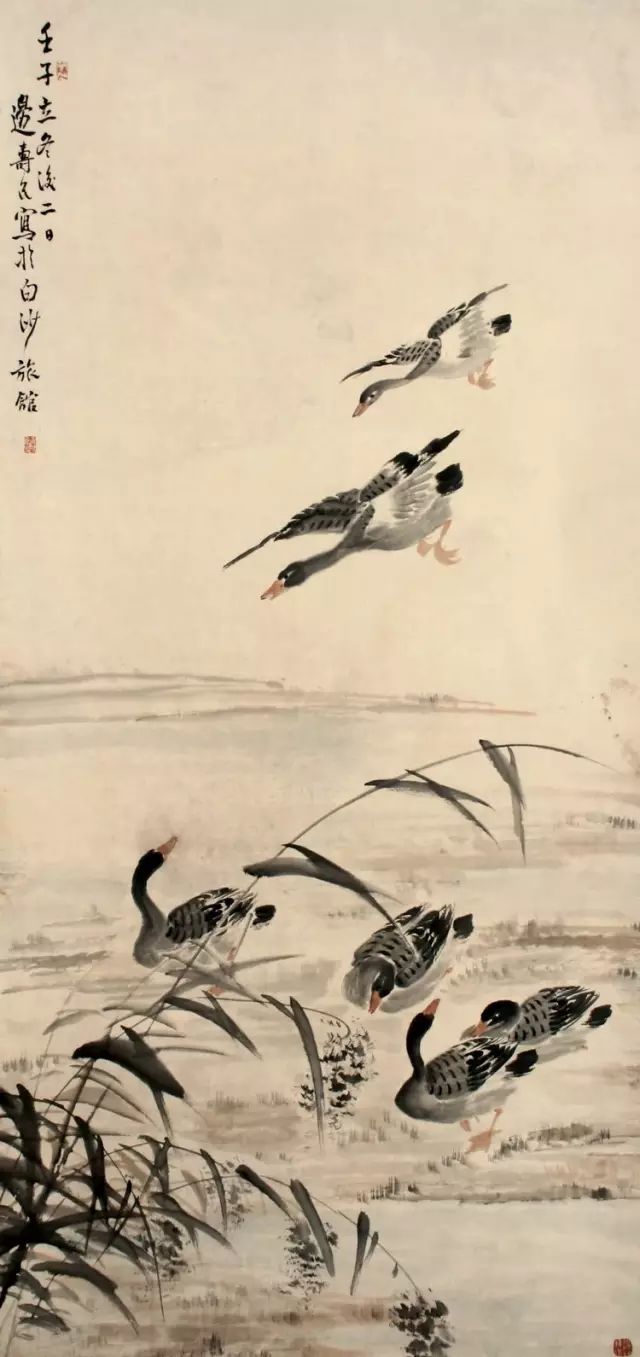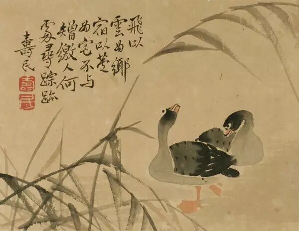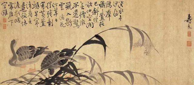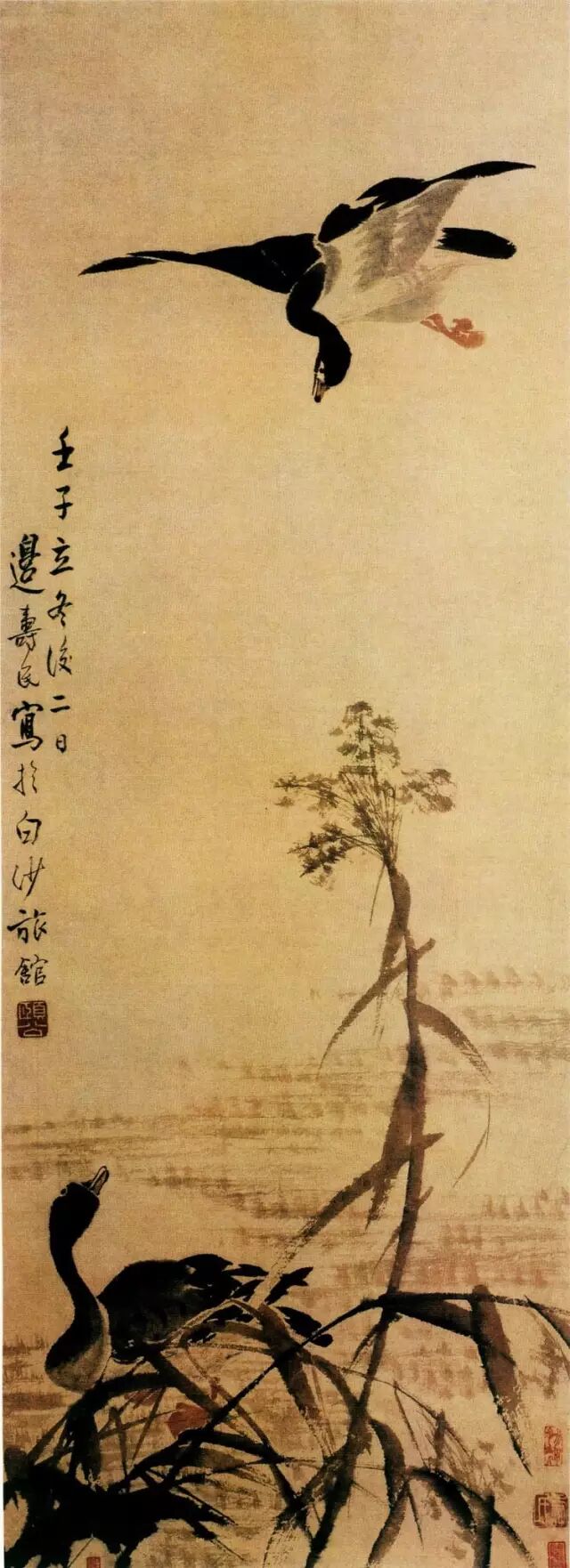芦雁倾注了边寿民一生的心血。他笔下的泼墨芦雁,苍浑生动,朴古奇逸,曲尽其态。边寿民还以墨竹法写芦,疏而遒劲,更使他的笔下的芦雁图交映生辉、出神入化。