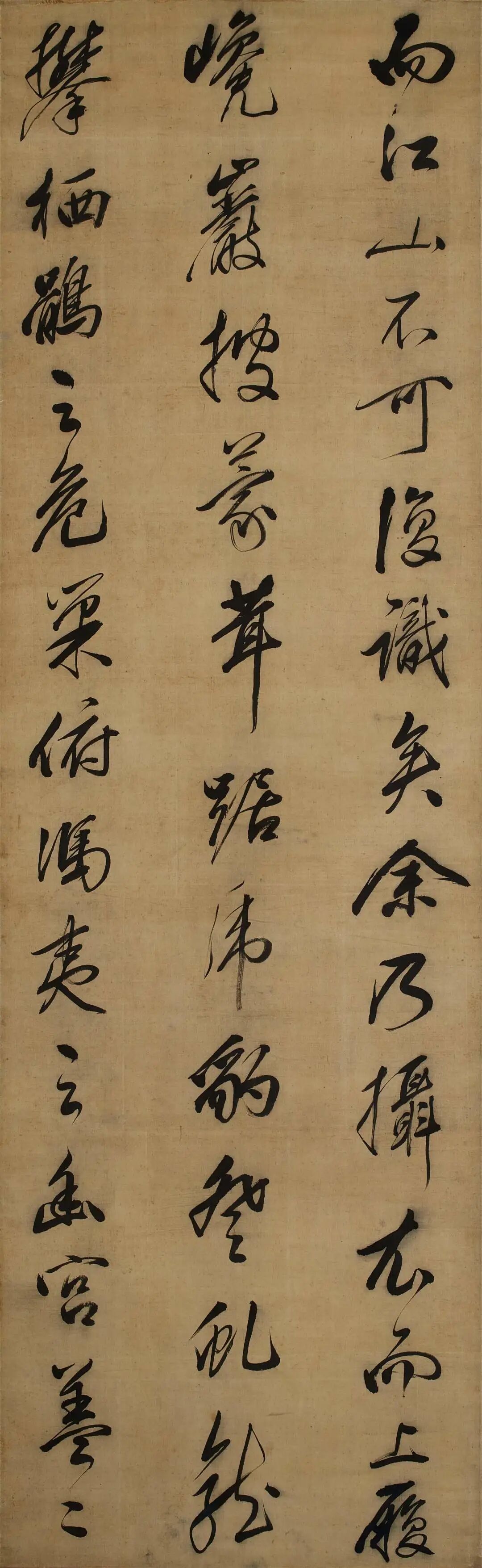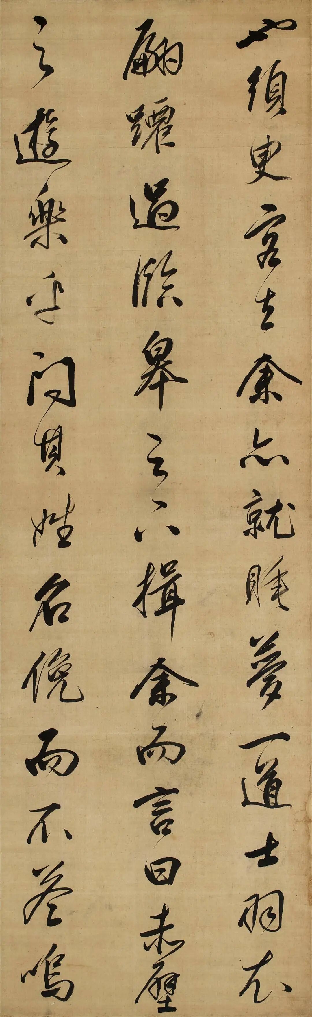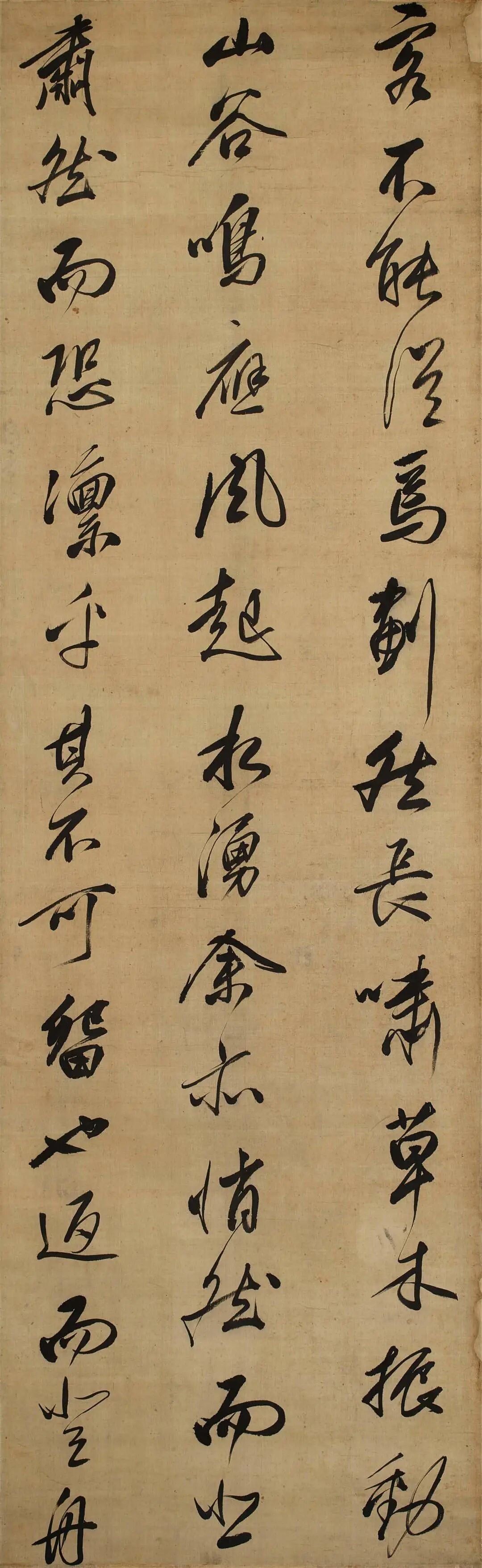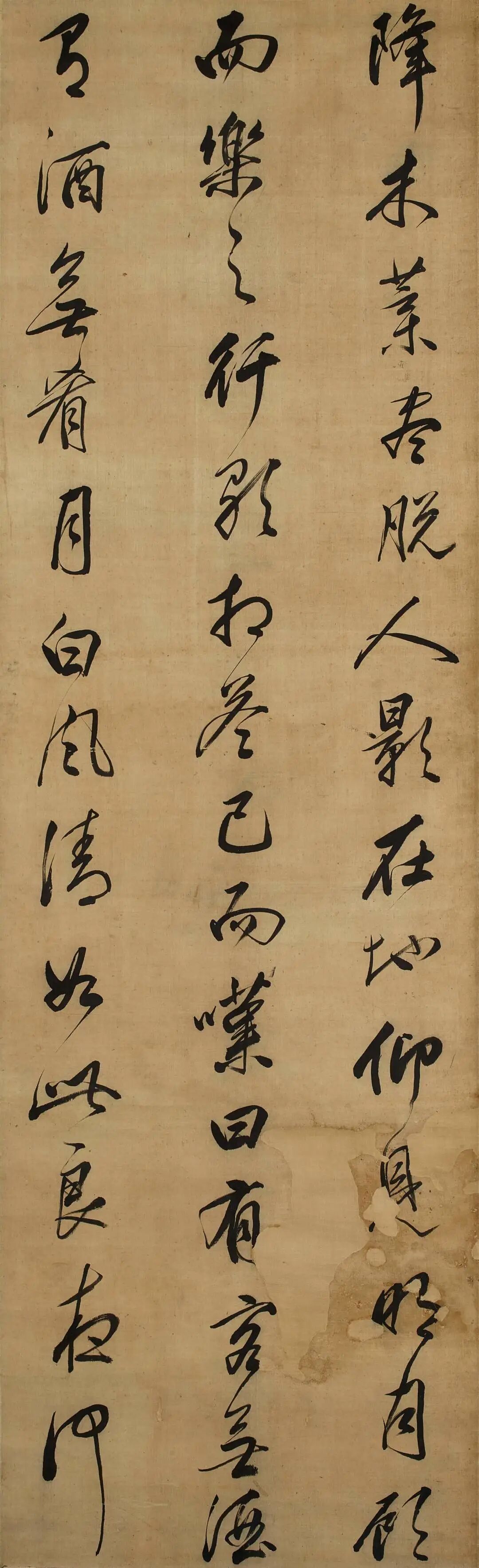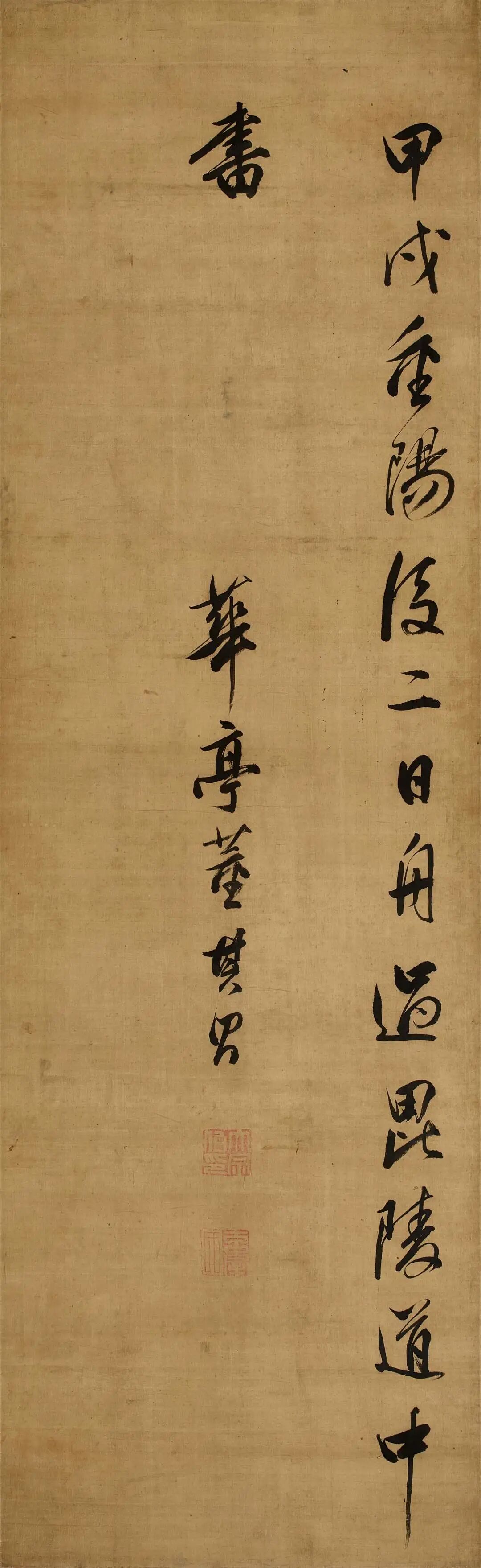 注:董其昌晚年,事业官场两得意,而崇祯年间党争不休,年事已高的他便急流涌退,深归故里。同时,在书法造诣上,年复一年的临古,纵使心志愈趋淡泊,笔头却愈显老辣。本幅即是一例,为董氏80岁时所作,兼容怀素之圆劲、米芾之跌宕、苏轼之浑厚、以及文敏公自身的流丽,整体酣畅淋漓,神采飞扬,可谓得意之作。