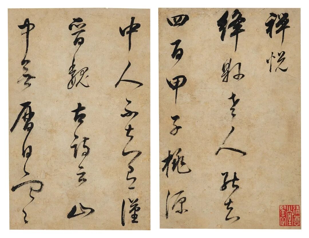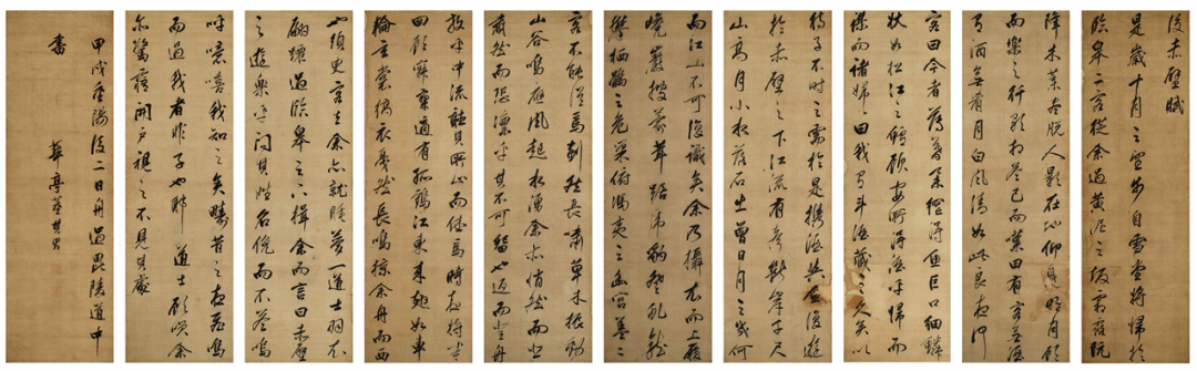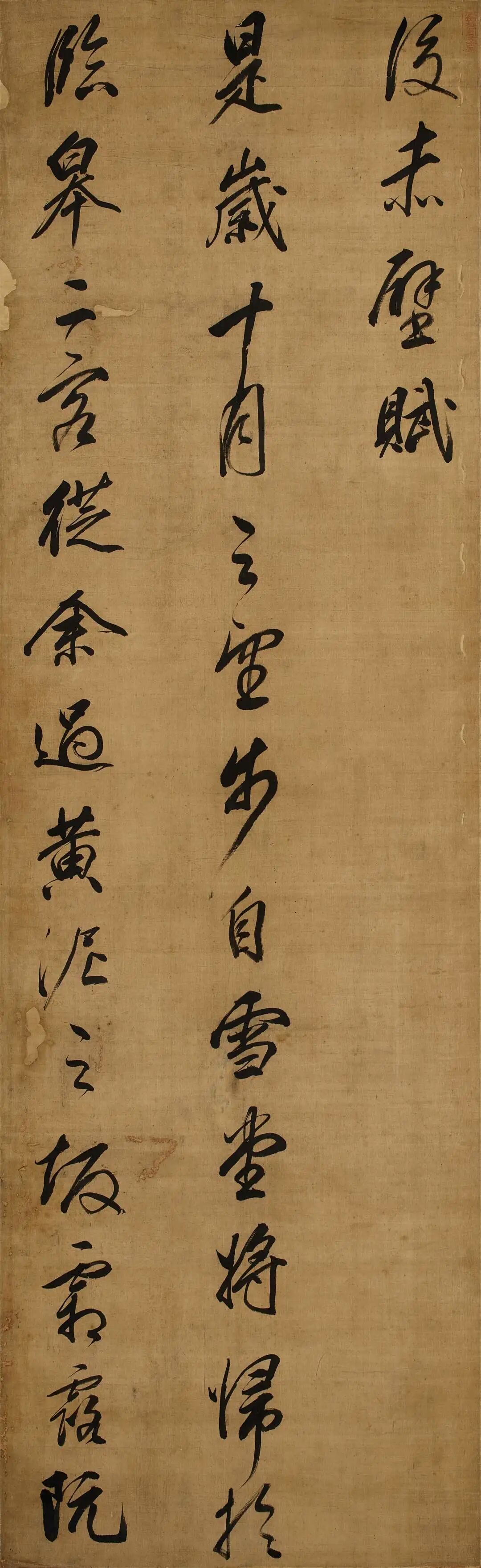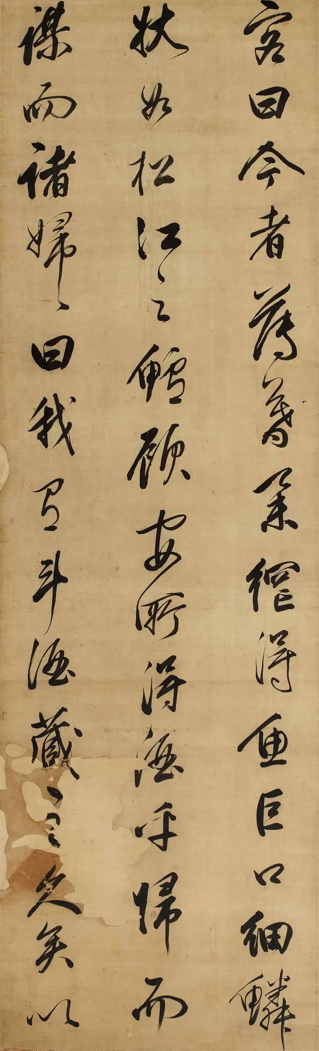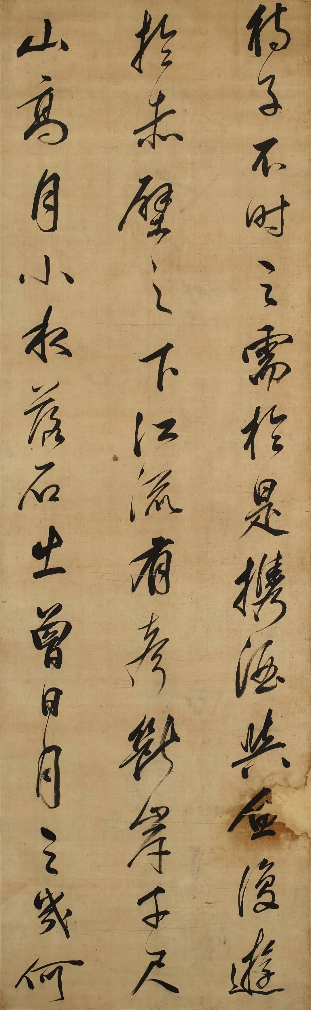 注:董其昌晚年,事业官场两得意,而崇祯年间党争不休,年事已高的他便急流涌退,深归故里。同时,在书法造诣上,年复一年的临古,纵使心志愈趋淡泊,笔头却愈显老辣。本幅即是一例,为董氏80岁时所作,兼容怀素之圆劲、米芾之跌宕、苏轼之浑厚、以及文敏公自身的流丽,整体酣畅淋漓,神采飞扬,可谓得意之作。
