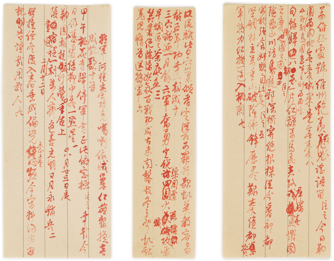 金粟山藏经纸可谓为中国书画中最具盛名之特殊用纸,千年以降,文人墨客视若珍宝,宋代可见淳佑元年(1241)汤汉自刻本《陶靖节诗集》(今藏中国国家图书馆)使用此纸作为书皮,明代有文征明《书杂花诗》(今藏上海博物馆)、祝允明《前后赤壁赋》(今藏上海博物馆)、董其昌行书《宋之问诗》(今藏北京故宫博物院)等传世经典皆书于此纸。至清代,乾隆皇帝对此纸之喜爱更是众所皆知,张燕昌《金粟笺说》曾记载「乾隆中叶,海宇晏安,上留意文翰,凡以名纸进呈者得蒙睿藻嘉赏,由是金粟笺之名以着」。因其稀有,皇帝曾诏令仿制,每纸并钤「乾隆年仿金粟山藏经纸」,可知片纸如金,凤毛麟角。