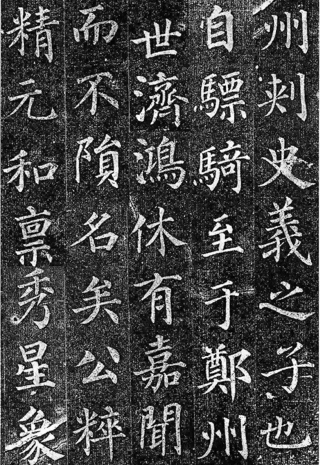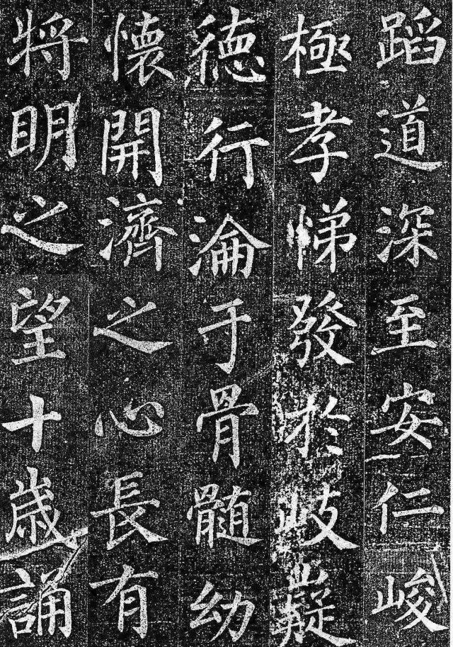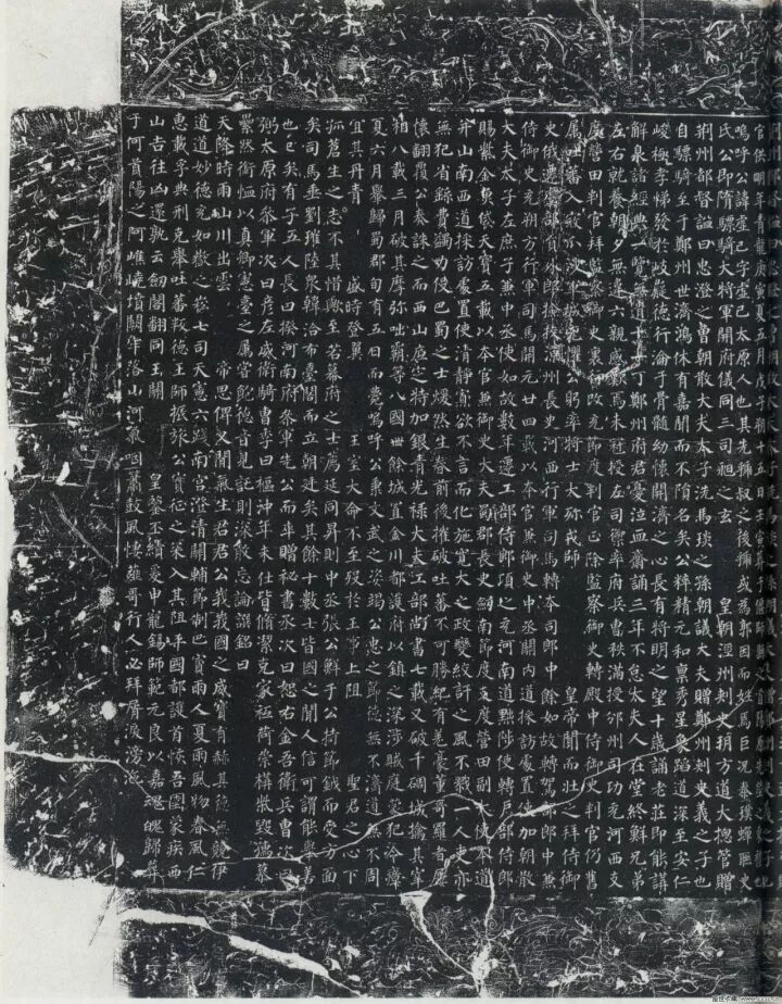 新出土的《郭虚己墓志》保持颜真卿楷书原始风貌。墓碑青石,高107厘米、宽104厘米、厚4.5厘米。盖顶篆书:《唐故工部尚书赠太子太师郭公墓志铭》。正文楷书,35行,满行34字,共有1150字。本帖为九七年刚从河南出土颜碑,保存完好,字口清晰,为目前已发现颜真卿(41岁书)最早的书法作品。