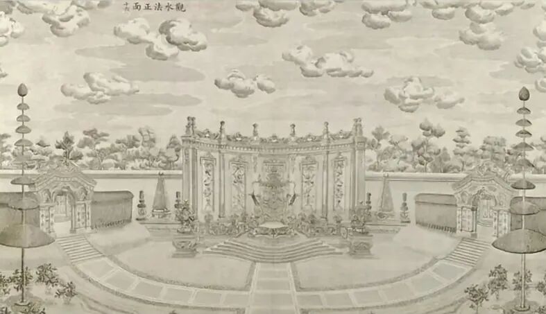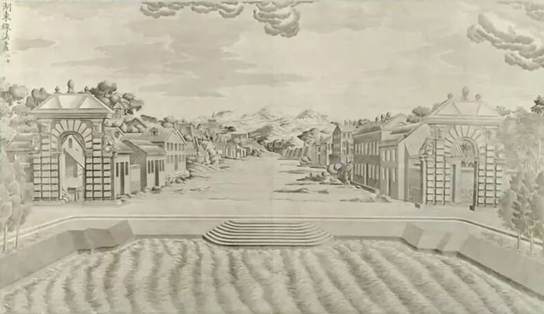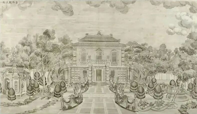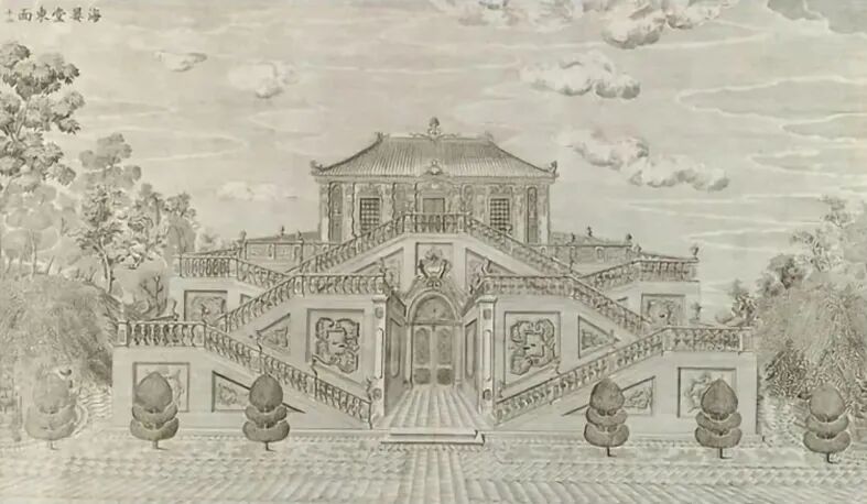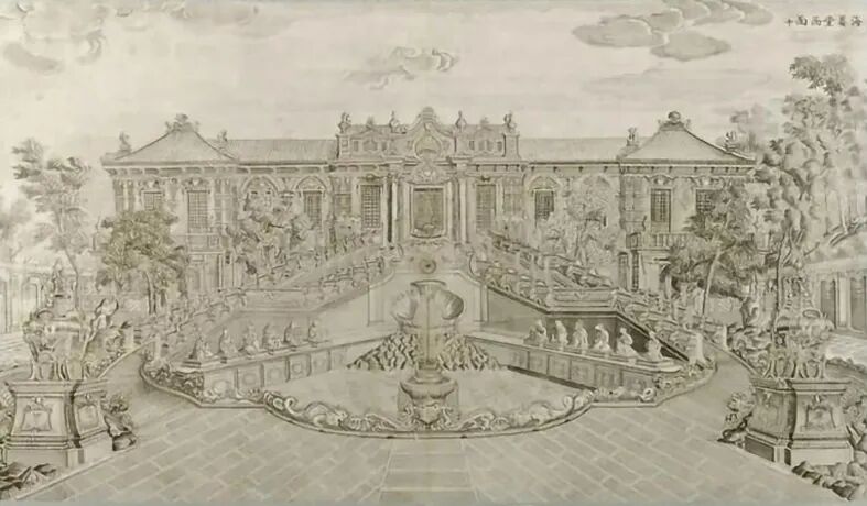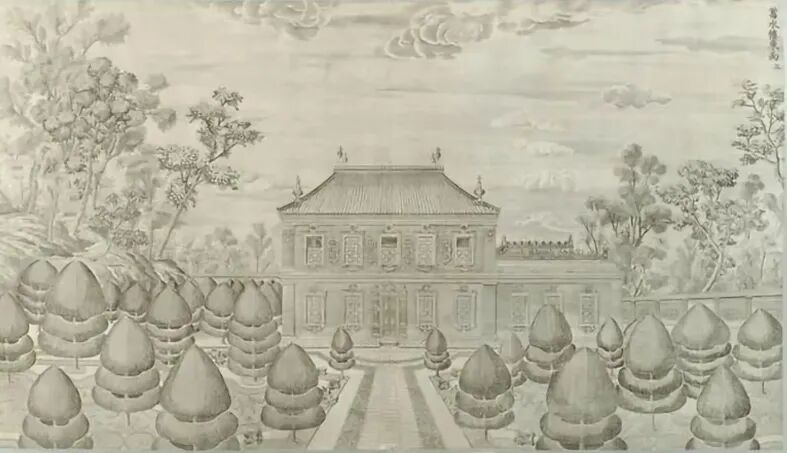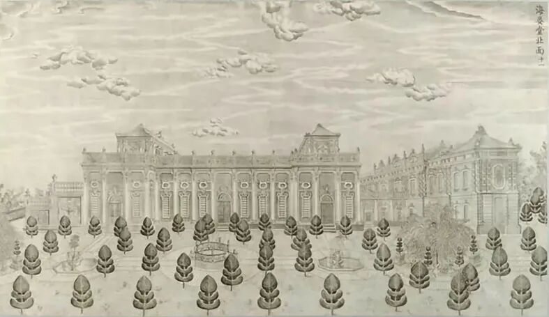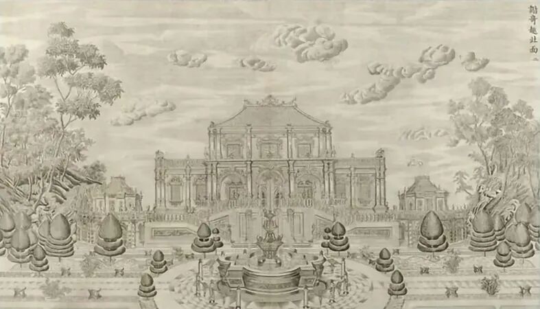 清雍正二年(1724年),雍正皇帝决定扩建康熙年间即已开始兴建的圆明园。在雍正、乾隆两朝持续不断的大规模扩建中,通晓西洋建筑学的郎世宁曾与法国传教士蒋友仁、王致诚等一起参与园内著名的“西洋楼”的设计和工程督造,并有机会在较长的时间里住在这座东方名园内,为装饰殿堂画了多幅作品,其中既有欧洲风格的油画,也有以欧洲焦点透视法在平面上表现深远效果的“线法画”。