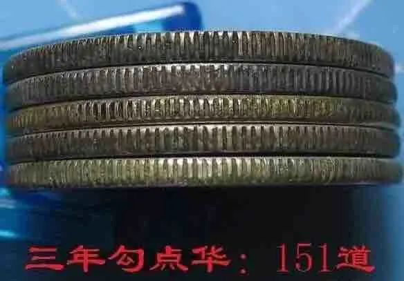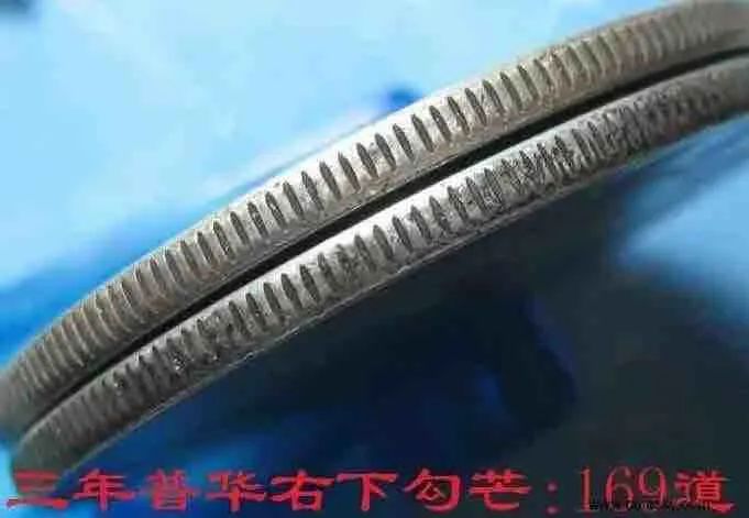 9、168道:主要品种有三年睁眼、闭眼0版三角圆,大章小星0版等等。特点:齿形平直工整,小倒角。较少。