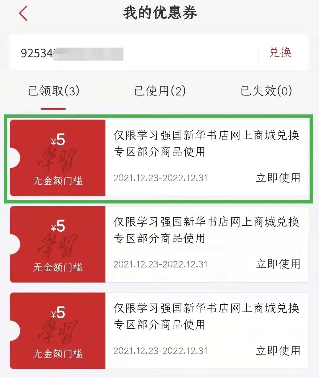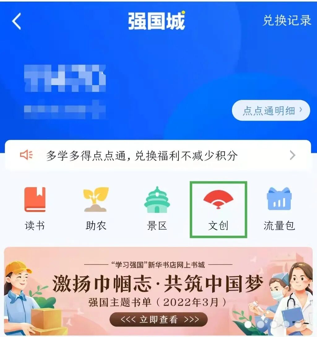 打开“学习强国”APP进入“强国城”,可查看“点点通”积分,用您的“点点通”积分可以兑换商品优惠券,在购买时使用强国优惠券可享受强国专享优惠价。