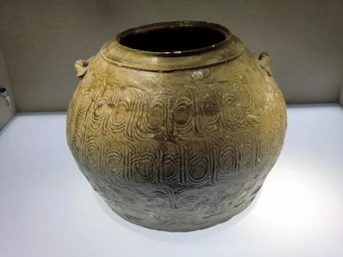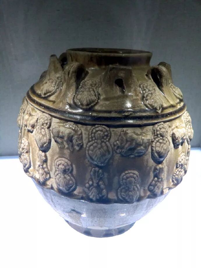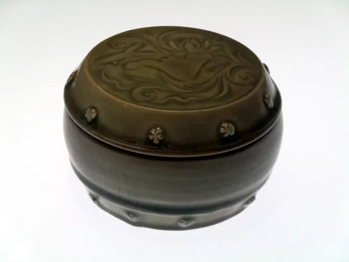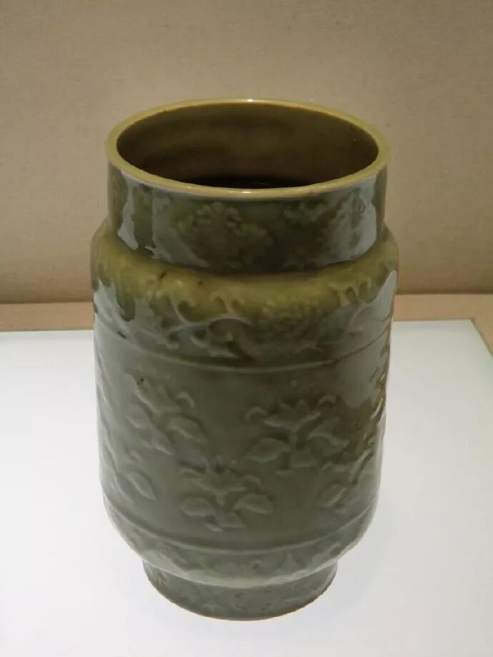 龙泉窑青釉印花卉纹壮罐,明永乐