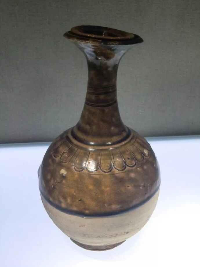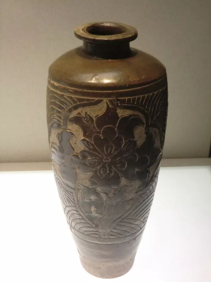 灵武窑黑釉剔刻牡丹纹瓶,西夏