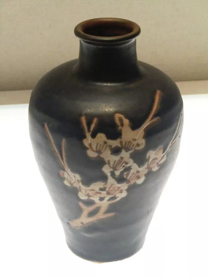 吉州窑黑釉剔刻梅花纹瓶,宋