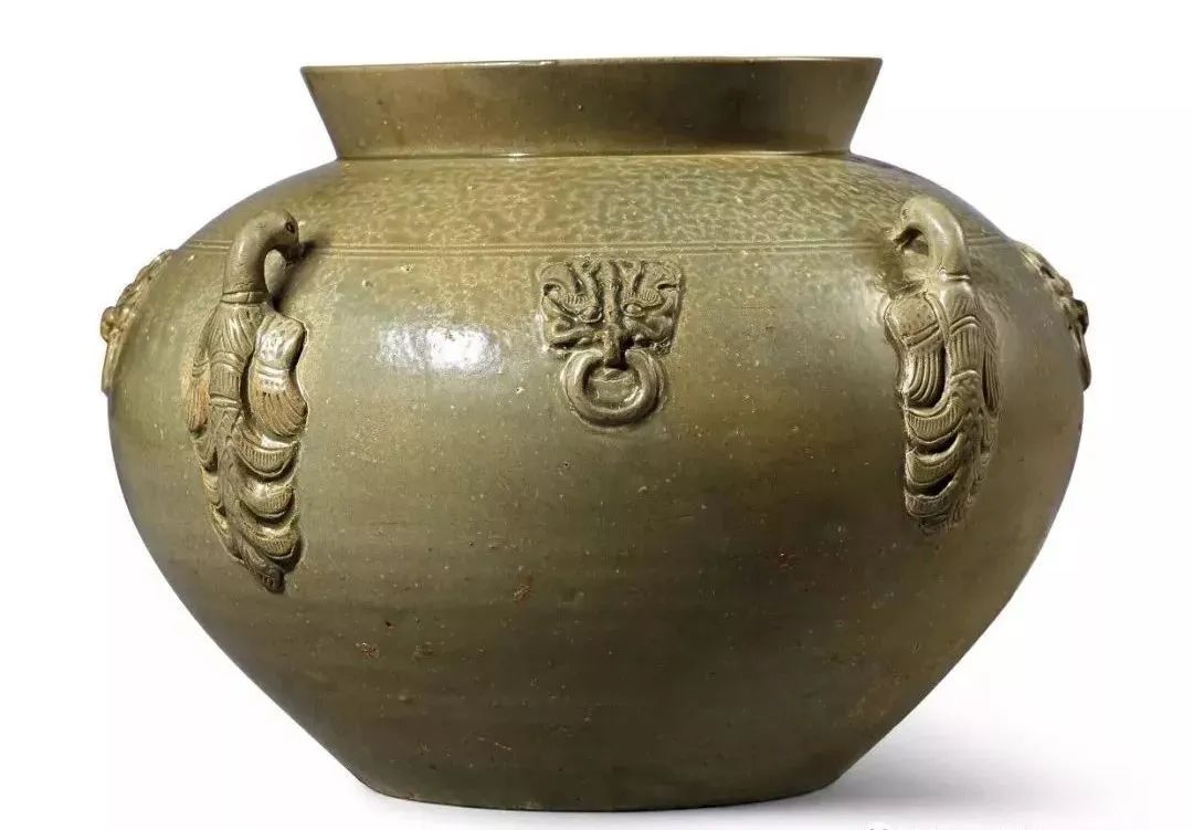 西晋越窑青釉宝鹅纹铺首耳罐