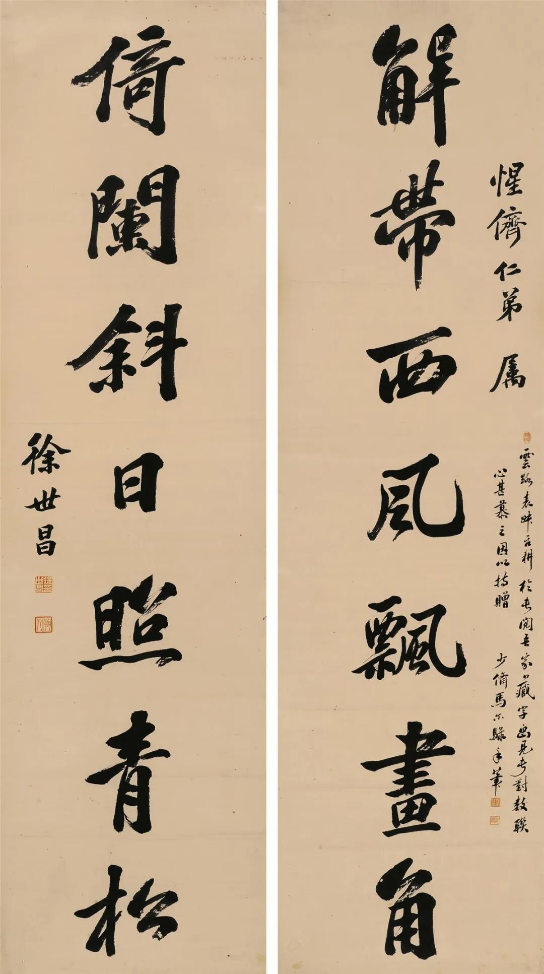 徐世昌虽未军阀,但是面对国仇大义还是一个铁汉。1931年日本侵占东北后,日本特工找北洋派人物劝他参加伪满政权,日方几次设法争取他的合作,他始终不为所动。徐世昌的书法大都为行草,自然简洁,行笔流畅,不疾不徐。笔墨带有东坡遗风,偶也具板桥笔意,皆属随意而行,下笔瘦劲俐落,自成一格。