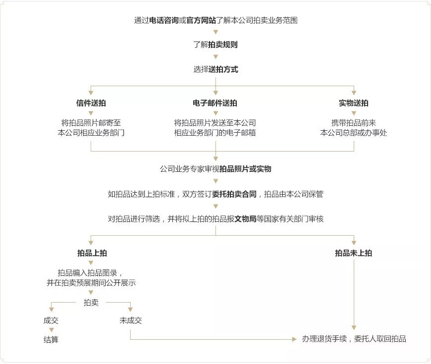 3) 直接送拍。您也可以将藏品送至公司杭州总部、上海办事处、北京办事处常年征集。工作时间为周一至周六(上午9:00至下午5:30,节假日除外),您可以将藏品送至相应地点。