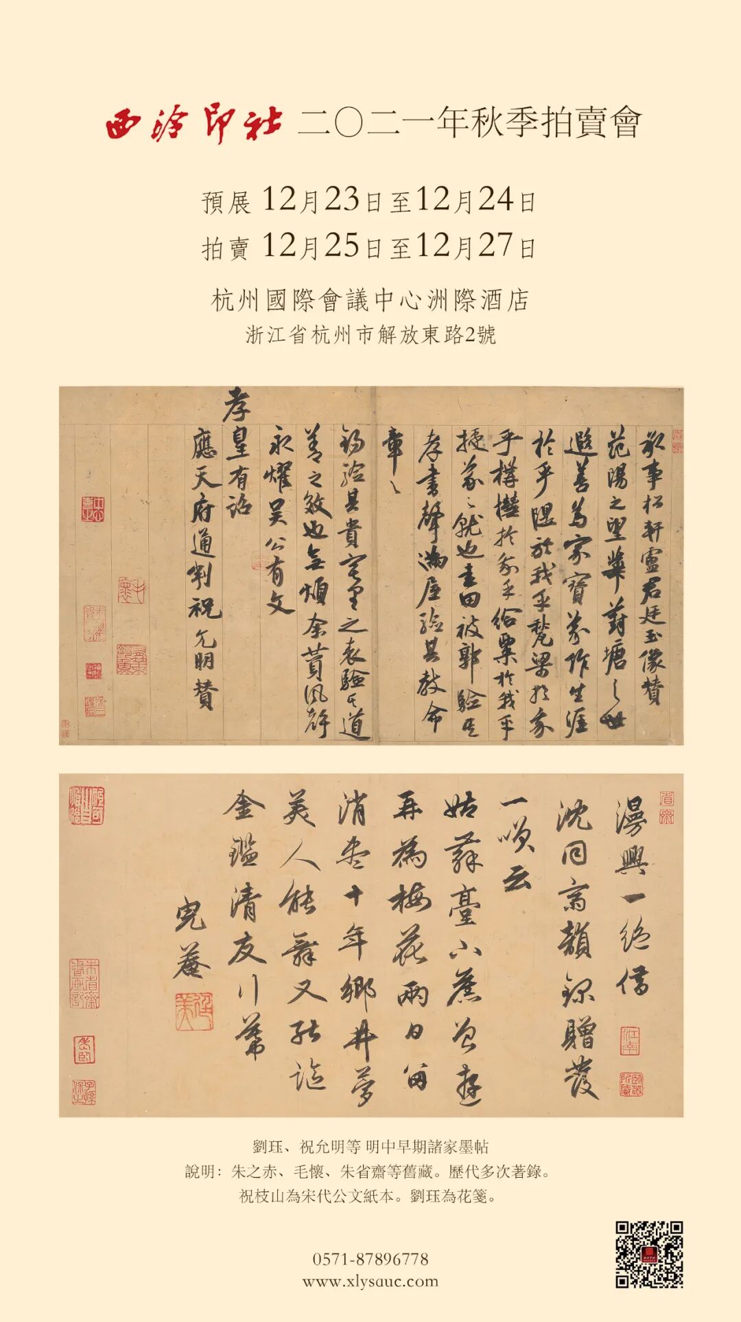 2021西泠秋拍 | 12.23-12.24 预展、12.25-12.27 拍卖,精品火热征集中