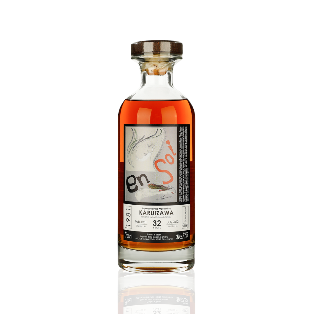 说明:此为1931-2013年轻井泽(Karuizawa)32年波本单桶威士忌,全球限量186瓶,桶号8461,57.3%酒精度;由法国LWDW(La Maison du Whisky)装瓶,并邀请大版著名艺术家山田夕香(Yuuka Yamada)设计艺术酒标。