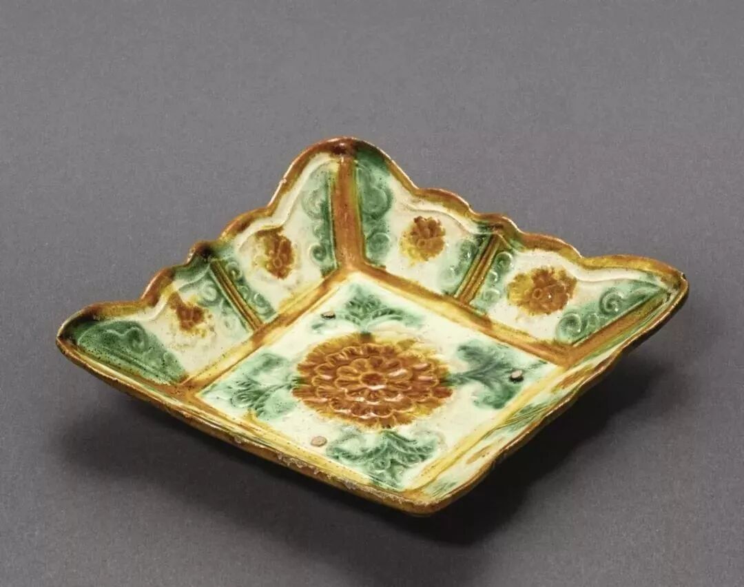 辽 三彩印菊花纹花口方盘(12.5万)