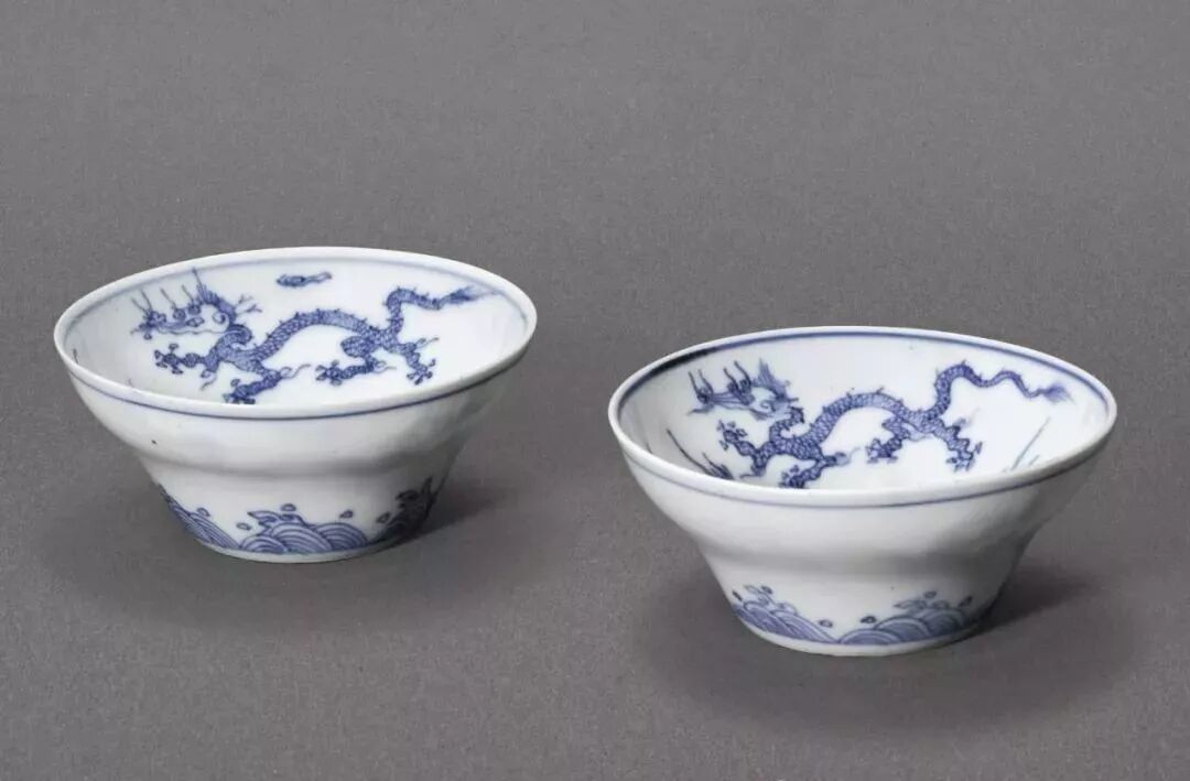 清康熙 青花龙纹折腰杯一对(10万)
