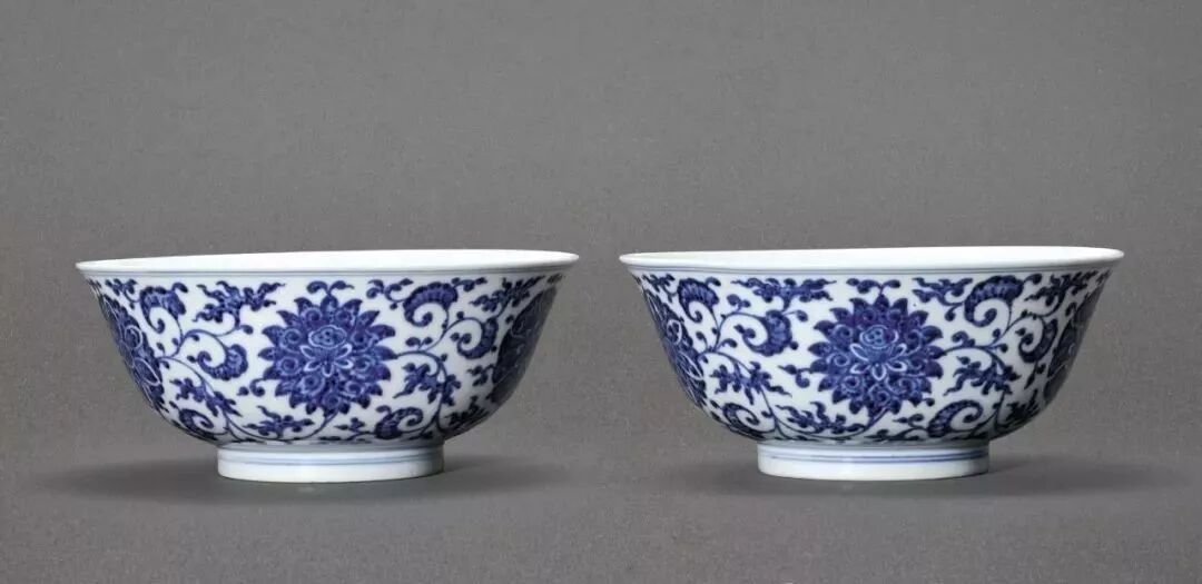 清乾隆 青花缠枝花卉纹碗一对(7.5万)