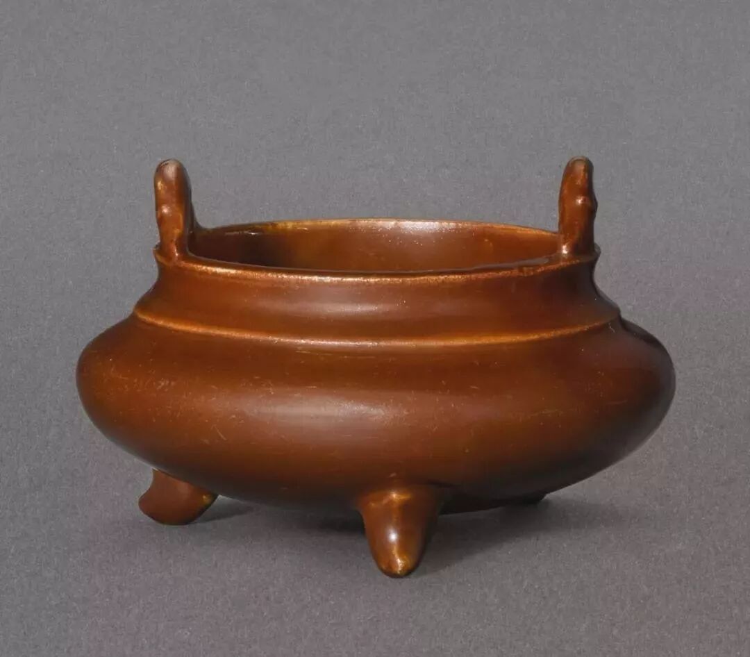 清康熙 酱釉竹节耳三足炉(25万)