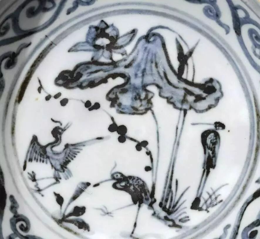 元 青花莲塘鹭鸶纹匜(138万)