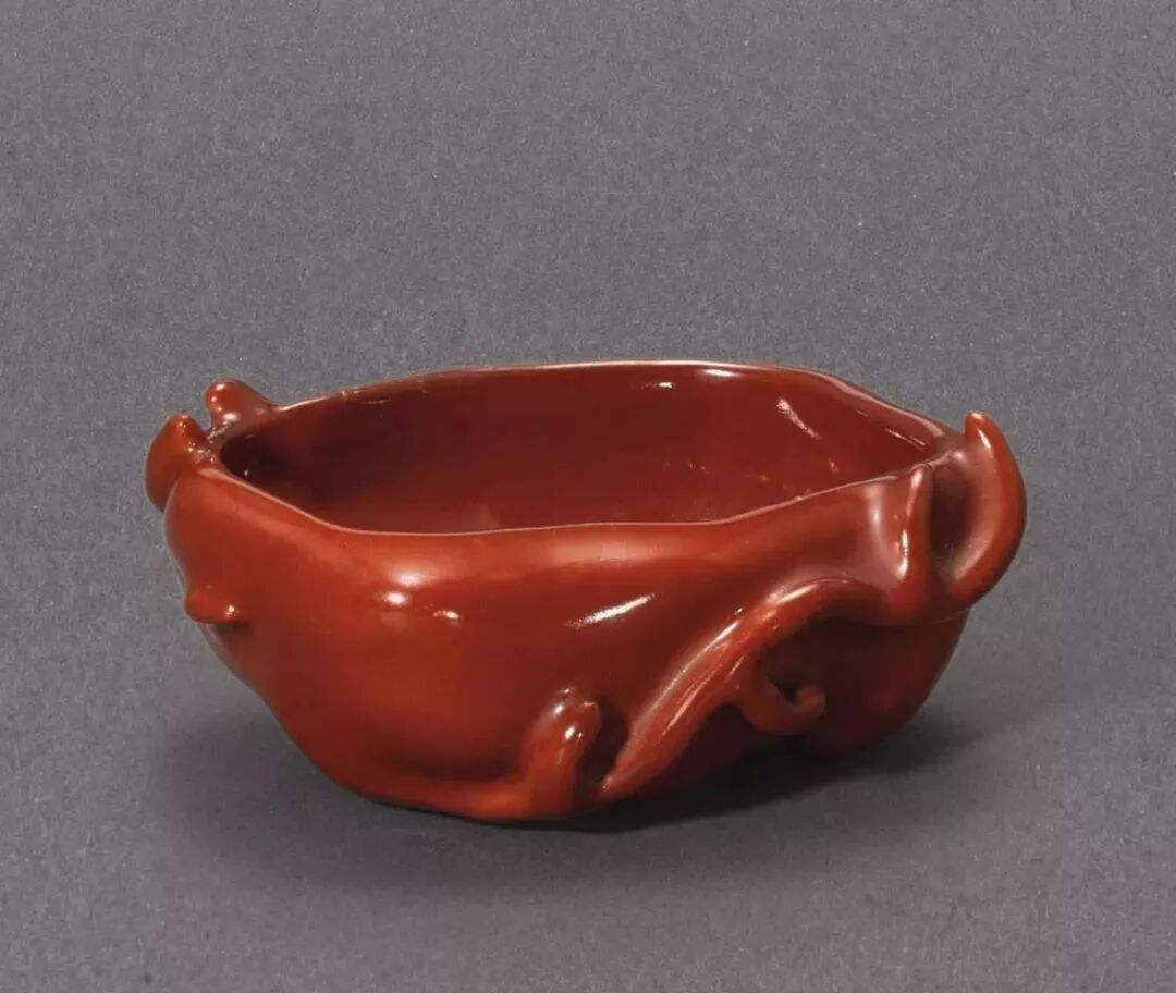 清18/19世纪珊瑚红釉水盂(12.5万)