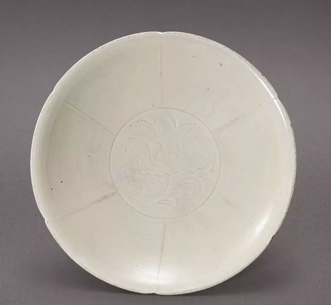 宋 定窑白釉刻莲花纹葵口盘(62.5万)