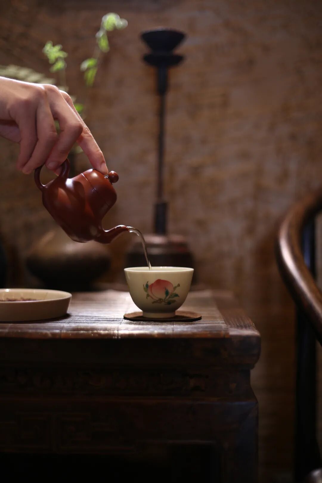 走进潮州城,每条老街小巷都能见到有人在闲逸地冲泡工夫茶,带着一股与世无年的神色,仿佛隐居此处已千年——红泥小火炉,榄炭手亲煎,冲茶之人手持一把小小的朱泥壶,“高冲低洒”、“盖沫重眉”、“韩信点兵”、“关公巡城”,时光好像在此停顿,成为壶里缓缓冲出的一泡茶。这把小小的手拉壶,历史背景深厚,地域色彩浓郁,越来越吸引着当下正逐渐体味到慢生活之美的人们。21世纪初潮州在修建防洪通道时,曾在城区上水门地段出土一个红泥炉和一个手拉朱泥壶壶体,壶平底,无圈足,壶盖已散佚。经考古人士考证,这个手拉壶是明代的产物。这把壶出士,一下子把手拉壶的历史前推了二百多年。曾因战乱近乎停产状态的手拉壶,在20世纪80年代改革开放期间再一次迎来了春天,潮州独特的地理人文及侨乡优势,作为具实用意义、具地域特色、且受欢迎手信的手拉壶再度畅销海外。2004年,潮州更被中国轻工联合会和中国陶瓷工业协会授予“中国瓷都”称号,潮州陶瓷业创下年产值超百亿的空前局面,此时的朱泥壶手拉工艺受到国内外茶壶商人的热捧,出现了供不应求局面。2014年,潮州手拉壶制作工艺现已被列入国家非物质文化遗产项目,达到一个新的历史发展高度。