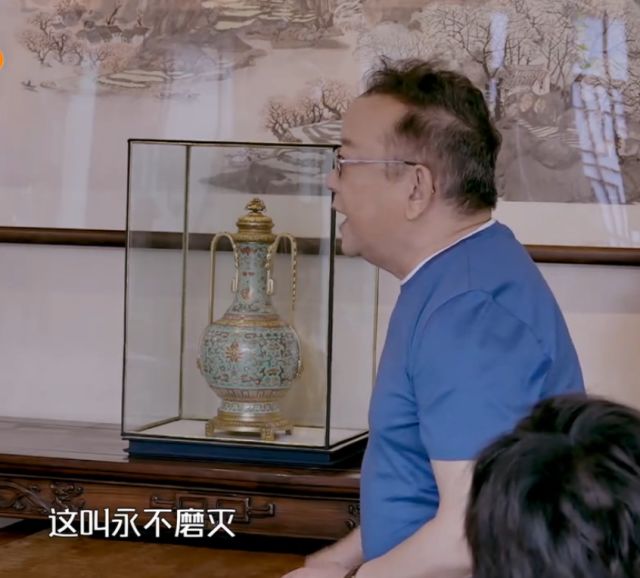 据说自从演了和珅后,王刚最喜欢的收藏就是清朝康熙乾隆年间之物,以青花瓷居多。这个从节目中也得到印证。王刚带着徒弟们进到他的书房,映入眼帘的是各种古董收藏品,两个架子上都是王刚收藏的瓷器花瓶,还有各种字画,趁着古典风十足的落地灯,相当古香古色。