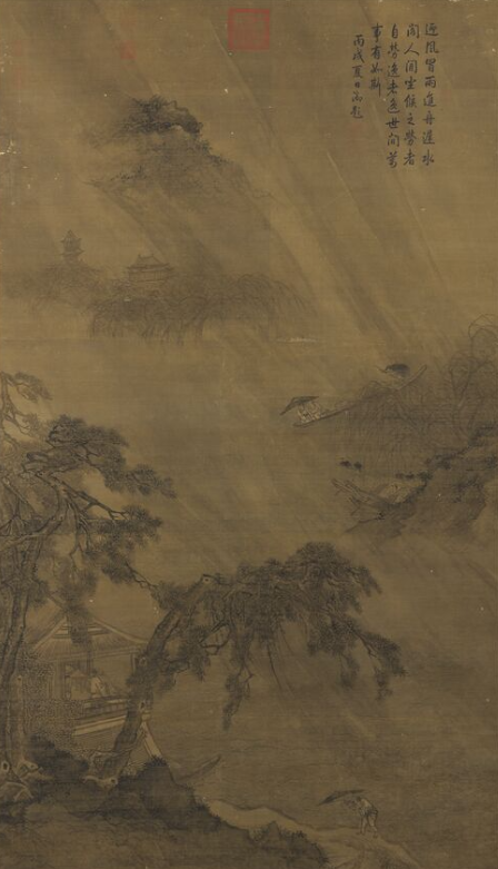 明吕文英 《江村风雨图》克利夫兰艺术博物馆藏
