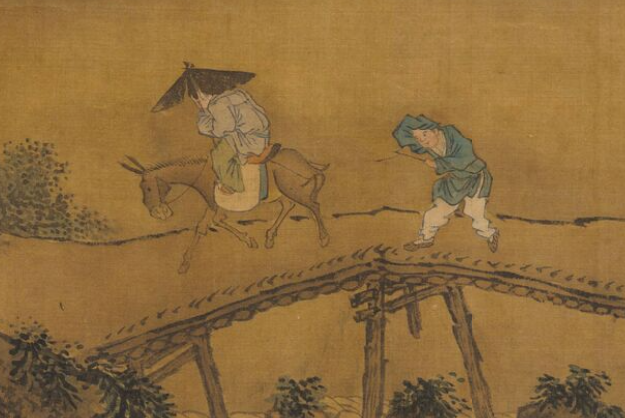 明谢时臣《风雨归村图》(局部)克利夫兰艺术博物馆藏