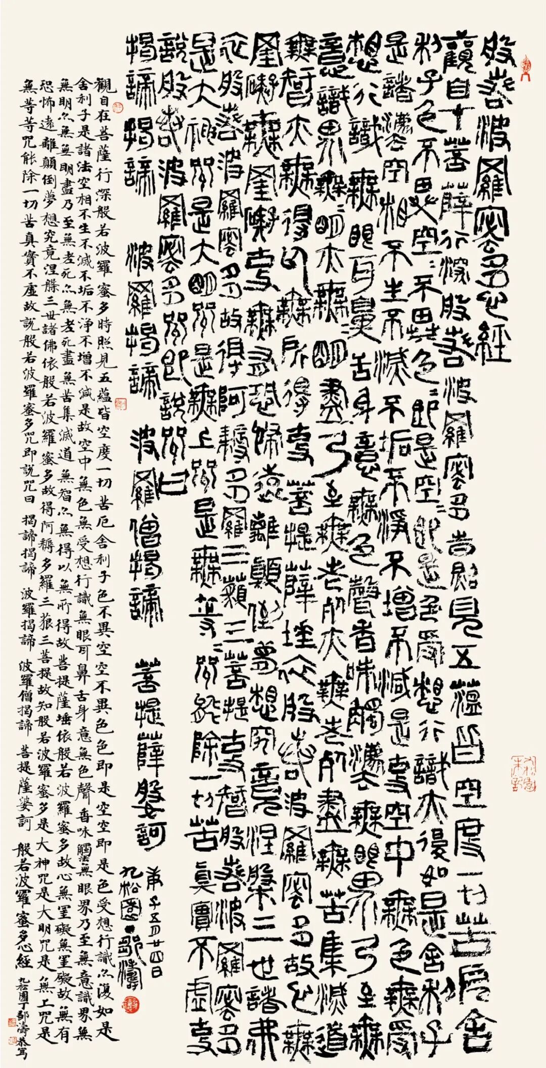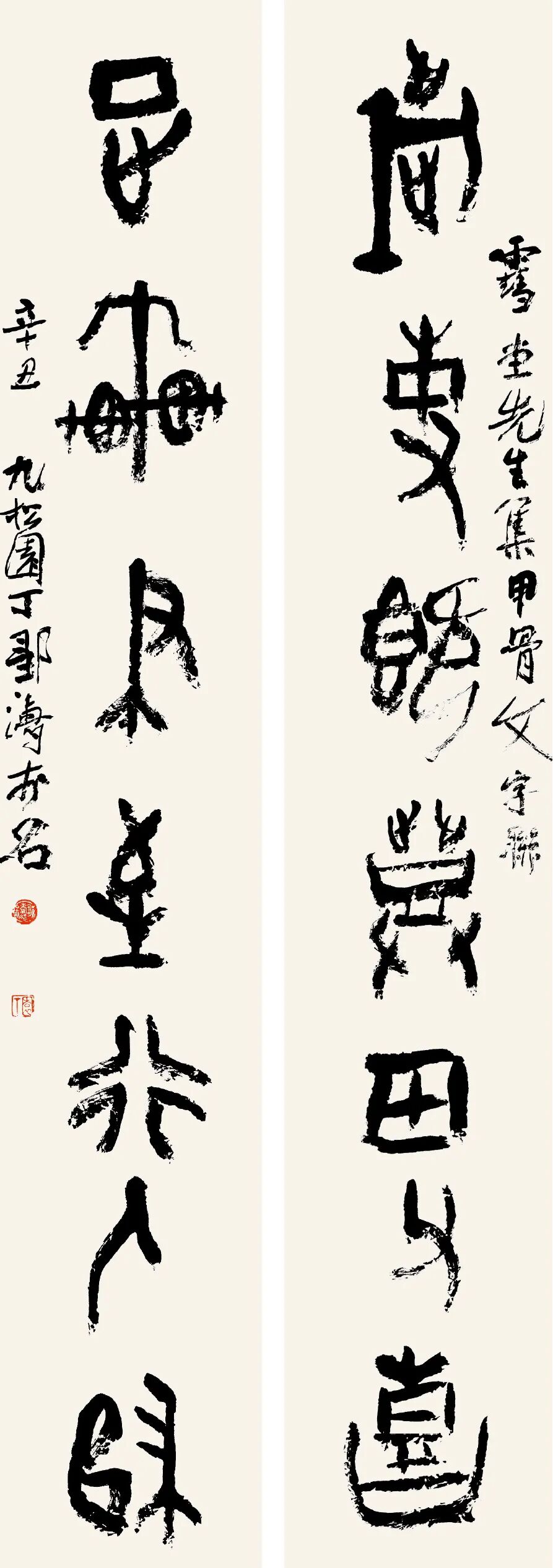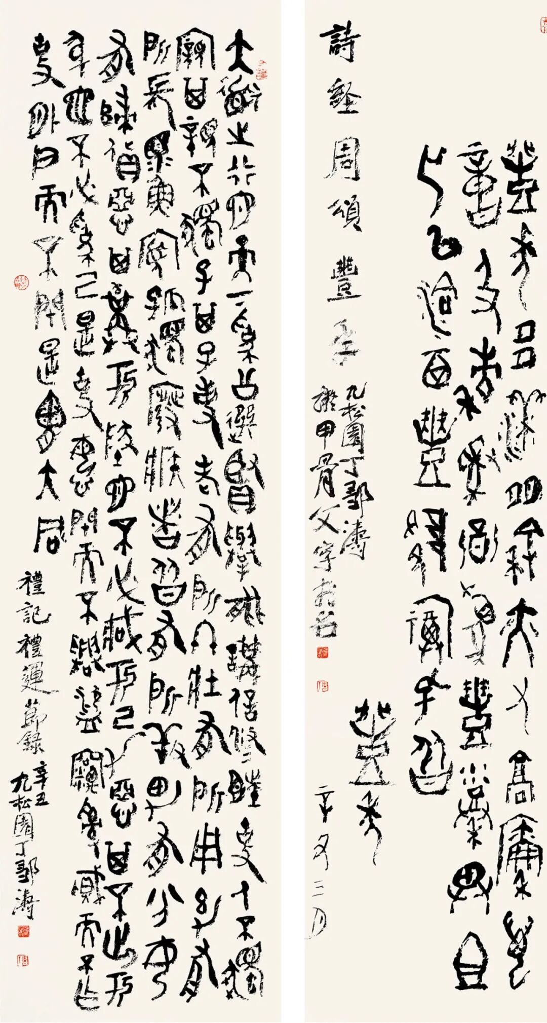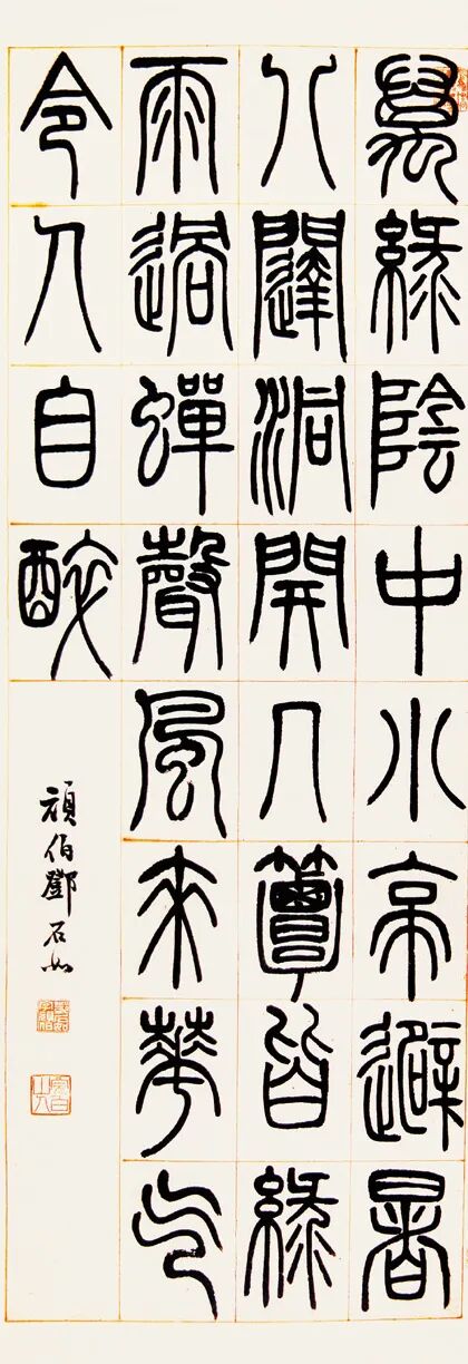篆书属于古文字,是文字发展的源头。无论是甲骨文、金文、小篆,它们有一个共性,那就是“象形”,即《说文解字序》中说的“远取诸身,进取诸物”“画成其物,随体诘诎”。篆书书法的欣赏,应当具备相当的文字学知识,以便了解书写的内容以及是否有错讹。文字错误对一件篆书作品而言是大忌,当然,对所有的书法作品都是这样,只是篆书更不易查别。在文字产生的早期,字体形态尚不稳定,加上其发展的路径很多,脉络复杂,因此同一个字往往有许多种不同的写法。若是不通文字学,不知道字体发展的前后过程、各个构件的意义,很容易出现错误。而作为我们欣赏而言,如若不通文字学,看不懂内容,那真是如看天书,更不要说体味其中的美了。![]()